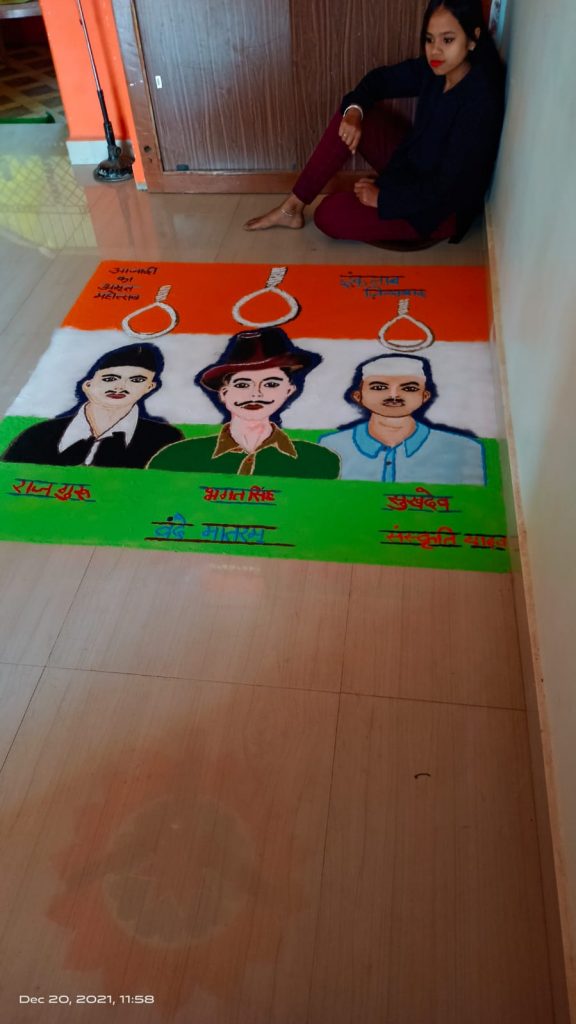 संस्कृति यादव ने जिला स्तरीय रंगोली प्रतियोगिता में जिले में जिले का प्रतिनिधित्व करते हुए द्वितीय स्थान बनाकर भारत सरकार द्वारा 5000रू की पुरस्कार जीता तथा उनकी ही बड़ी बहन दिव्या यादव ,देश भक्ति गीत में तृतीय स्थान बनाकर 3000रू का पुरस्कार जीती है।अमृत महोत्सव के अवसर पर रंगोली,देशभक्ति गीत और लोरी प्रतियोगिता आयोजित हुई थी।जिसमे रंगोली में संस्कृति ने तथा देश भक्ति गीत में दिव्या यादव ने आनलाइन भाग लिया था