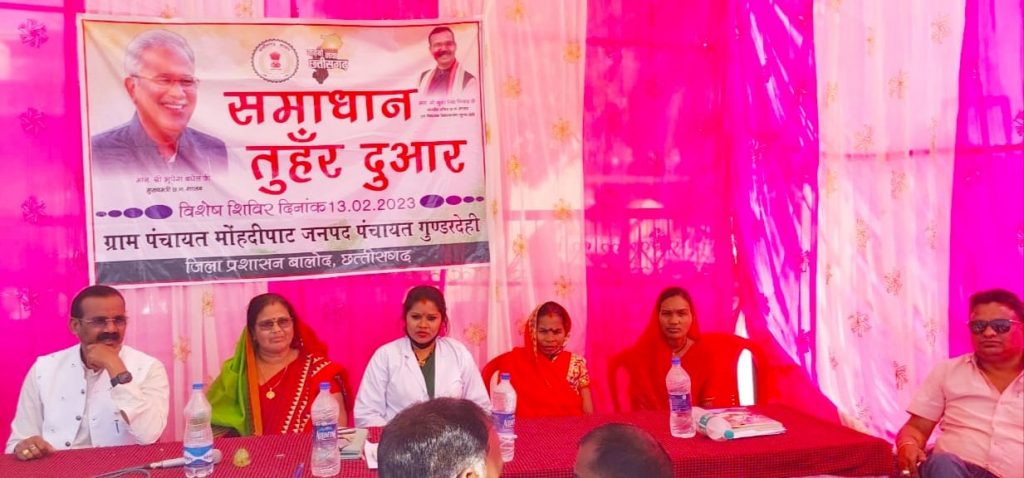 जिसमें संसदीय सचिव एवं गुंडरदेही विधायक श्री कुंवर सिंह निषाद ने ग्रामीणों की समस्याएं सुनी। इस दौरान राजस्व, और कृषि संबंधित मामले त्वरित हल करने निर्देश दिए गए।
