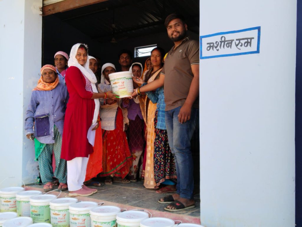 मां गौरी स्व सहायता समूह की महिलाएं यह पेंट बना रही हैं। पूरी यूनिट में लगभग 40 लाख की लागत आई है। काम को गति देने के लिए महिलाओं ने कुछ कर्ज भी लिए हैं तो कुछ राशि शासन से भी मिले हैं। 100 किलो गोबर और 100 लीटर पानी को मिलाकर 120 लीटर सीएमसी यानी कारबोक्सी मिथाइल सेल्यूलोज का निर्माण किया जाता है और इनमें फिर मशीनीकरण से प्राकृतिक पेंट तैयार किया जाता है। इमल्शन पेंट बनाने के लिए 20 लीटर सीएमसी से 100 लीटर पेंट तैयार हो जाता है। पेंट का रेट 225 रुपए प्रति लीटर के साथ 18 प्रतिशत जीएसटी है।