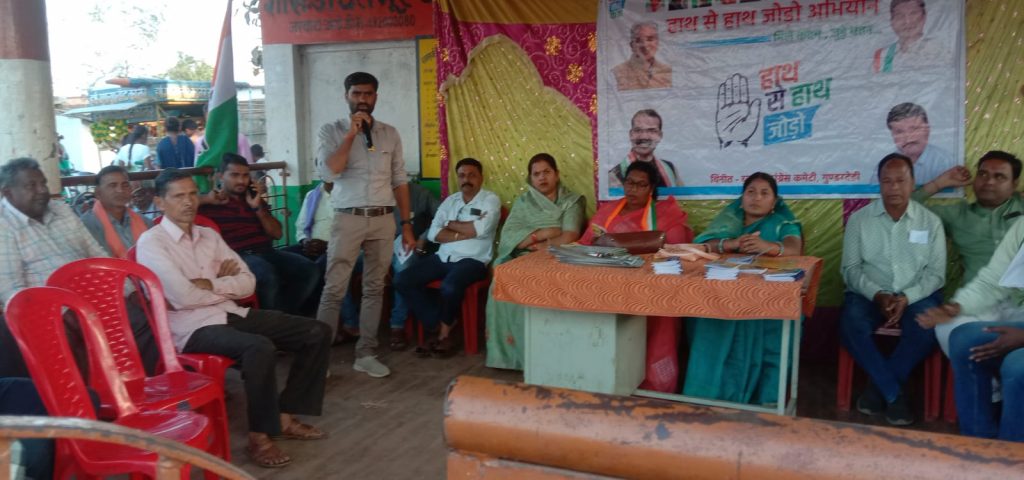 जिसमें छत्तीसगढ़ की कांग्रेस सरकार की जनकल्याणकारी नीतियों का प्रचार-प्रसार किया गया!साथ ही माननीय श्री राहुल गांधी जी के भारत जोड़ो यात्रा का संदेश एवं केंद्र की मोदी सरकार के विफलताओं तथा आरक्षण विधेयक रोकने के खिलाफत संबंधी पाम्पलेट का वितरण आमजनता को किया गया!