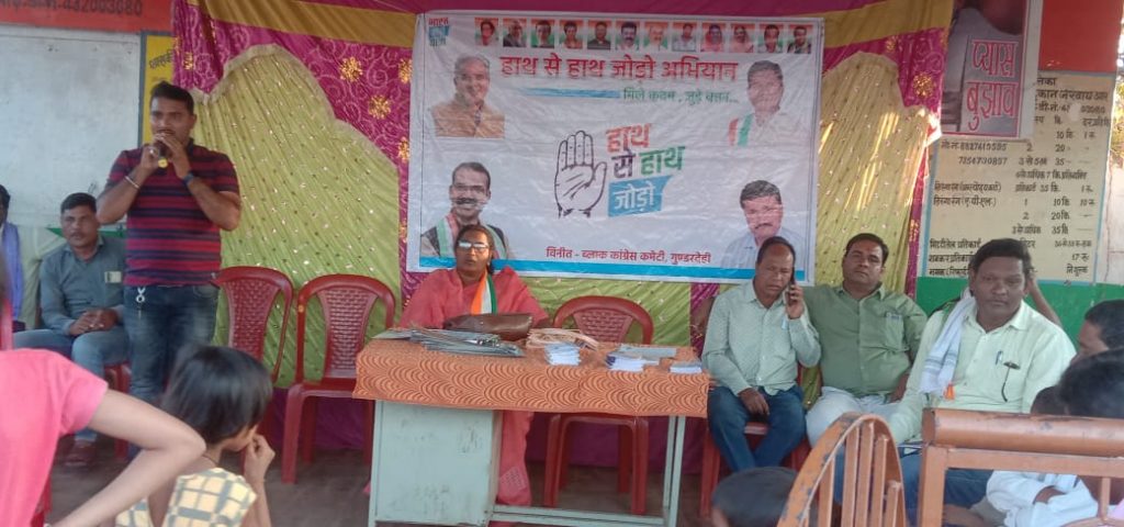 गुंडरदेही। छ ग प्रदेश कांग्रेस कमेटी के निर्देशानुसार आज ब्लाक कांग्रेस कमेटी गुंडरदेही के अध्यक्ष श्री भोजराज साहू के नेतृत्व में ग्राम जरवाय में हाथ से हाथ जोड़ो यात्रा किया गया,
