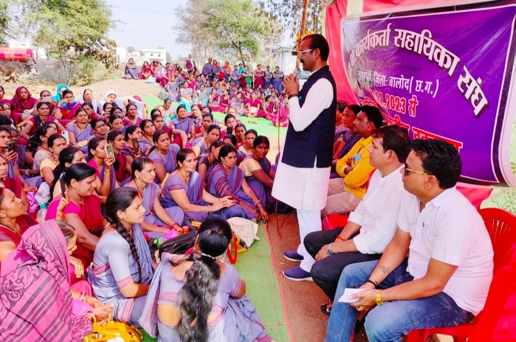 गुंडरदेही। गुंडरदेही मे आज संसदीय सचिव एवं गुंडरदेही विधायक श्री कुंवर सिंह निषाद आंगनबाड़ी कार्यकर्ताओं की चल रहे धरना स्थल पर अचानक जा पहुंचे।
