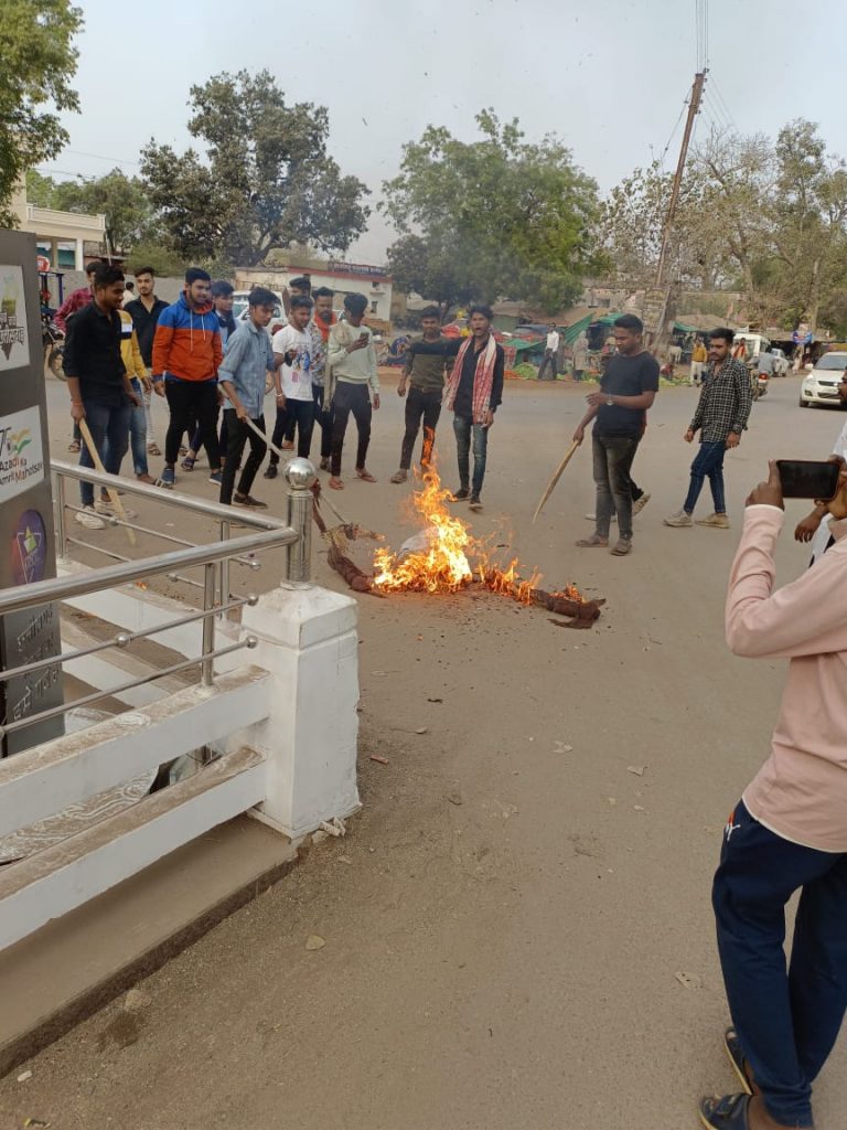 जिसकी नक्सलियों ने बीच बाजार में हत्या कर दी जवान असम में पदस्थ था, वो छुट्टिया बिताने अपने घर आया था नक्सलियों द्वारा इस प्रकार के टारगेट किलिंग प्रदेश में बढ़ते गुंडाराज और नक्सलियों के आतंक को प्रदर्शित करता है। जिसके विरोध में आज नगर के जय स्तंभ चौक में नक्सलवाद का पुतला दहन किया गया इस कार्यक्रम में जिला संगठन मंत्री लोकेंद्र कुर्रे ,प्रदेश कार्यकारिणी सदस्य लुमेश साहू ,नगर मंत्री अभिन्न यादव , नगर सहमंत्री अंश योगी , जीत यदु, उजांशु, चित्रांश,अनमोल, निखिल,आदित्य बढतीया,लक्ष्य, पुष्कर ,जीतू ,मिक्की, आशीष, सूर्या, सचिन, सोनू, विक्की उर्वर्षा,सहित सभी कार्यकर्ता उपस्थित थे ।