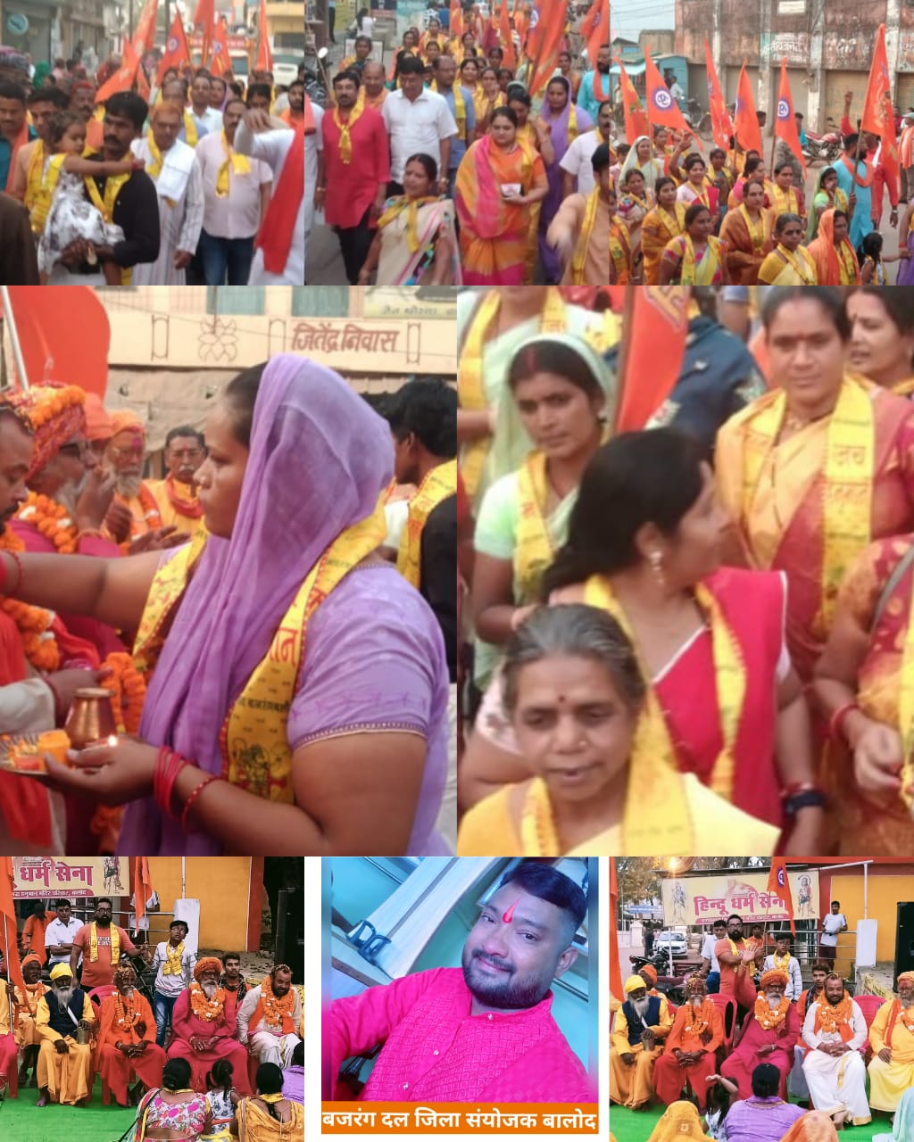 बालोद नगर की मधु चौक में विशेष स्वागत अभिनंदन संतों का किया गया। पूर्व में हिंदू धर्म अपनाने वाली बहन रानी गौर पति मनोज गौर ने विशेष स्वागत संतों की आरती एवं श्रीफल और मिठाई भेंट की मधु चौक से सदर रोड होते हुए घड़ी चौक पहुंचे। वहां भी व्यापारियों के द्वारा भव्य स्वागत किया गया। घड़ी चौक से जयस्तंभ चौक श्री सिद्ध मनोकामना हनुमान मंदिर के पास भव्य सभा हुई। सभा के बाद संतो को विश्राम के लिए कुर्मी भवन ले जाया गया। विश्व हिंदू परिषद बजरंग दल मातृशक्ति दुर्गा वाहिनी सभी सभी भाई बहनों सहित उपस्थित थे।