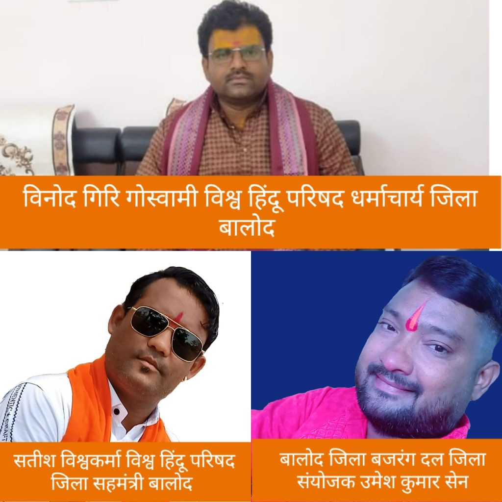 विश्व हिंदू परिषद धर्माचार्य विनोद गिरी गोस्वामी जिला बालोद, विश्व हिंदू परिषद जिला सहमंत्री सतीश विश्वकर्मा बालोद, बजरंग दल जिला संयोजक उमेश कुमार सेन के नेतृत्व में हुआ बजरंग दल का गठन