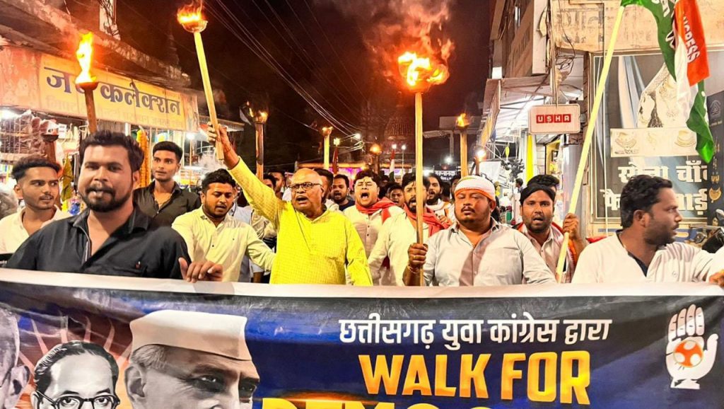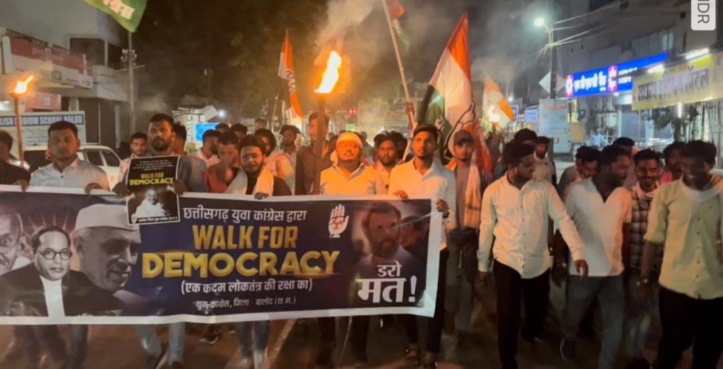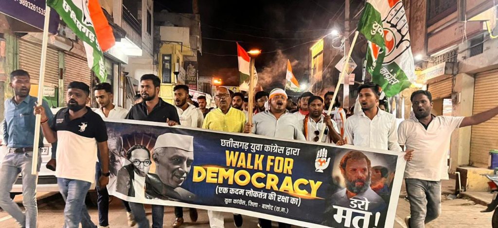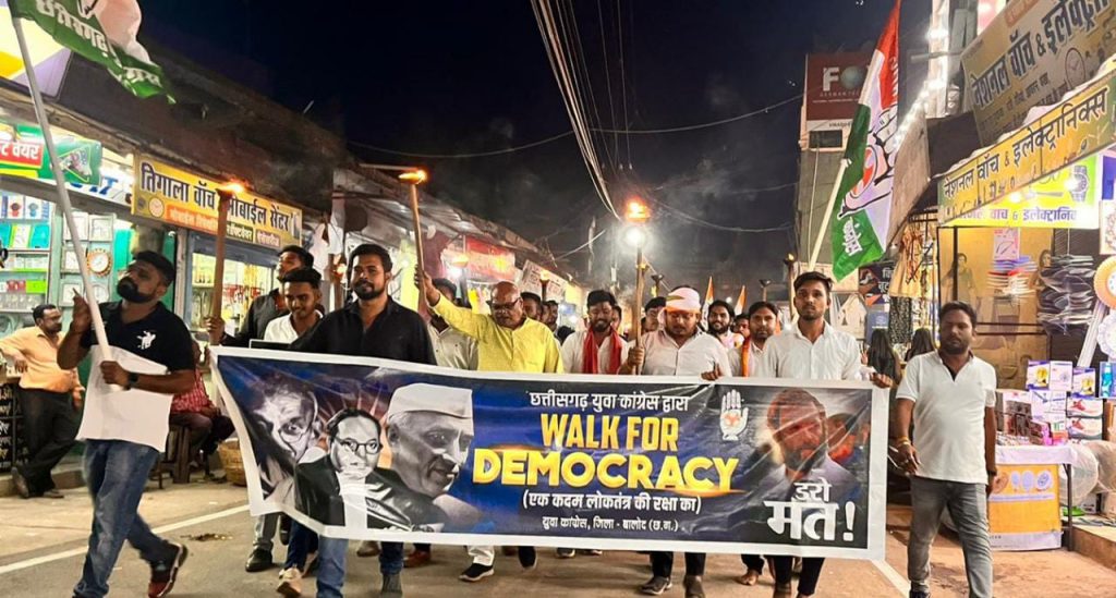 बालोद। संविधान निर्माता भारत रत्न बाबा साहब भीमराव अम्बेडकर की 132वीं जयंती के दूसरे दिन आज जिला युवा कांग्रेस अध्यक्ष प्रशांत बोकडे एवम तीनो विधानसभा अध्यक्ष बालोद संदीप साहू, डौंडी लोहारा भरत देवागन, गुंदेरदेही अनुभव शर्मा के संयोजन में केन्द्र की मोदी नेतृत्व वाली भाजपा सरकार द्वारा संवैधानिक संस्थाओं को समाप्त कर संसद में विपक्ष की आवाज को दबाने की कोशिश के विरोध में बालोद राजीव भवन से लेकर सदर बाजार होते हुये कचहरी चौक में बाबा साहब अंबेडकर की प्रतिमा स्थल तक वॉक फॉर डेमोक्रेसी के लिए पदयात्रा की गई।