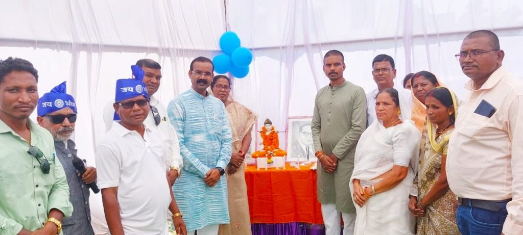 इस दौरान संसदीय सचिव एवं गुंडरदेही विधायक श्री कुंवर सिंह निषाद के द्वारा बाबा साहेब के तैल चित्र पर माल्यार्पण कर श्रद्धांजलि दी।