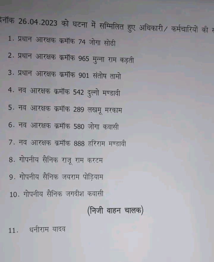 बस्तर के आईजी सुंदरराज ने बताया कि अरनपुर के पालनार क्षेत्र में नक्सलियों ने जवानों को अपना निशाना बना लिया. फिलहाल तलाश अभियान जारी है. जानकारी के मुताबिक इस हमले में प्रधान आरक्षक जोगा सोढी, मुन्ना राम कड़ती, संतोष तामो, नव आरक्षक दुल्गो मण्डावी, लखमू मरकाम, जोगा कवासी, हरिराम मण्डावी, गोपनीय सैनिक राजू राम करटम, जयराम पोड़ियाम, जगदीश कवासी शहीद हो गए. वहीं निजी वाहन का चालक धनीराम यादव की भी इस हमले में जान चली गई।