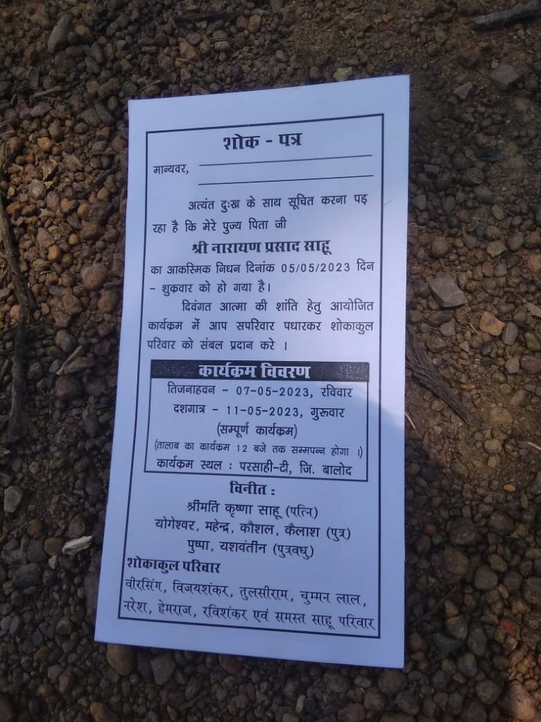बालोद/जामगांव आर।ग्राम परसाही टी निवासी नारायण प्रसाद साहू जी 85 वर्षेे का , निधन हो गया