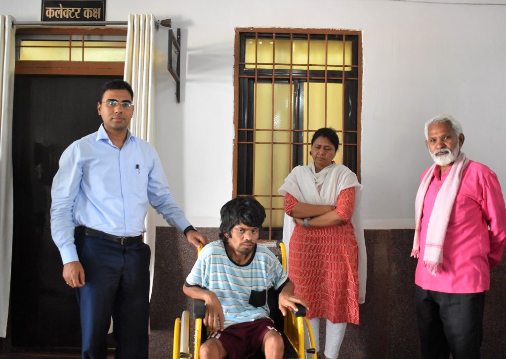 कलेक्टर श्री शर्मा ने इसे त्वरित संज्ञान में लेते हुए दिव्यांग युवक चंद्रशेखर को तत्काल व्हील चेयर प्रदान किया। इस दौरान श्री शर्मा ने पूरी संवेदनशीलता के साथ दिव्यांग चंद्रशेखर एवं परिजनों से बातचीत कर उनका हालचाल पुछा। कलेक्टर से भेंट करने के तत्काल बाद व्हील चेयर मिलने से दिव्यांग चंद्रशेखर एवं उनके परिजनों के चेहरे पर प्रसन्नता का भाव नजर आ रहा था।