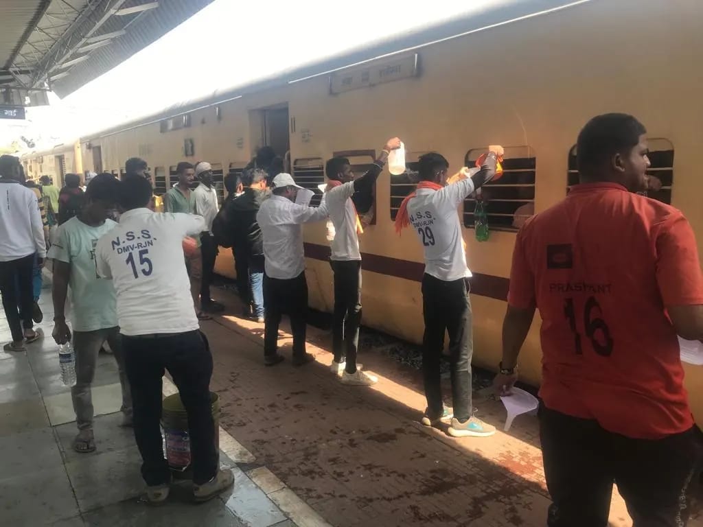 राजनांदगांव। राष्ट्रीय सेवा योजना दिग्विजय महाविद्यालय राजनांदगांव के स्वयंसेवियों द्वारा ट्रेन में यात्रा कर रहे लोगो को निशुल्क ठंडा पानी पिलाने का सेवा कार्य किया जा रहा है।