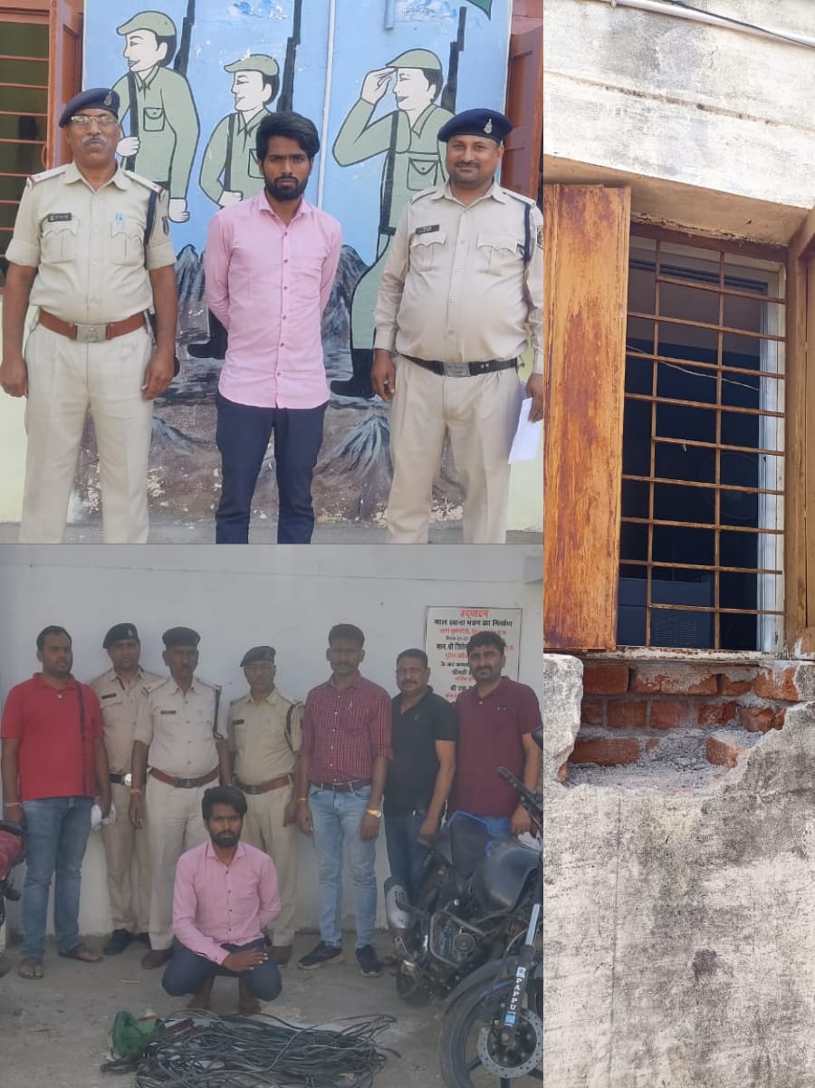 बालोद। तीन अलग-अलग मामलों में चोरी के आरोपी को पुलिस ने गिरफ्तार किया है।हाल ही में नया मामला सिकोसा जिला सहकारी केंद्रीय बैंक शाखा में कैमरे की हार्ड डिस्क चोरी का सामने आया था। प्रार्थी लवकुश नायक ब्रांच मैनेजर जिला सहकारी बैंक सिकोसा ने रिपोर्ट दर्ज कराया था कि दिनांक 20.05.2023 को रात्रि मे अज्ञात आरोपी के द्वारा जिला सहकारी बैंक सिकोसा का ताला तोडकर अंदर प्रवेश कर सीसीटीव्ही कैमरा के एनव्हीआर को चोरी कर ले गया है। रिपोर्ट पर अपराध क्रमांक 218/23 धारा 457, 380 भादवि इसी तरह दूसरा केस प्रार्थी बिरेन्द्र देशमुख निवासी सलौनी ने रिपोर्ट दर्ज कराया था की अज्ञात आरोपी के द्वारा 13.05.2023 के रात्रि मे प्रार्थी के वेल्डिंग वर्क शॉप मे अज्ञात आरोपी के द्वारा ताला तोडकर रात्रि मे प्रवेश कर नगदी 15,000 रूपया एवं वेल्डींग रॉड, केबल वॉयर, कटर मशीन को चोरी कर ले गया है। तीसरा केस .प्रार्थी अजय कुमार देशमुख निवासी बिरेतरा ने रिपोर्ट दर्ज कराया कि एचपी गैंस एजेंसी गोदाम बिरेतरा मे दिनांक 13.05.2023 के रात्रि मे अज्ञात आरोपी के द्वारा चोरी करने के नियत प्रवेश कर सीसीटीव्ही कैमरा के केबल वायर को काट कर चोरी करने का प्रयास किया है पुलिस अधीक्षक जितेन्द्र कुमार यादव के निर्देशानुसार, अतिरिक्त पुलिस अधीक्षक महोदय हरीश राठौर के मार्गदर्शन, पुलिस अनुविभागीय अधिकारी अनुविभाग गुण्डरदेही गीता वाधवानी के पर्यवेक्षण मे निरीक्षक राकेश ठाकुर थाना प्रभारी गुण्डरदेही के नेतृत्व मे प्रकरण में चोरी गये मशरूका व अज्ञात आरोपी के पता तलाश हेतु सायबर सेल बालोद एवं थाना गुण्डरदेही का संयुक्त टीम गठित कर प्रकरण के विवेचना दौरान डॉग स्कॉड , मुखबिरो की सूचना, पर संदिग्ध प्रीतम मारकण्डे पिता दीपक मारकण्डे उम्र 27 साल निवासी सिकोसा जो घटना के बाद से फरार था। जिसे गठित टीम द्वारा अथक प्रयास एवं मेहनत से थाना लाकर पुछताछ कर मेमोरण्डम कथन लिये। जिस पर बताया कि 13.05.2023 को रात्रि मे अपने टीव्हीएस मोटर सायकल से ग्राम सलौनी जाकर देशमुख वेल्डींग वर्कशॉप मे चोरी करने की नियत से प्रवेश कर नगदी रकम 15,000 रूपये व वेल्डींग रॉड, केबल वॉयर, कटर मशीन को चोरी करने पश्चात् उसी रात्रि को करीबन 03ः00 बजे चोरी करने के नियत से ग्राम बिरेतरा गैंस गोदाम के सीसीटीव्ही कैमरा के केबल को काटकर ऑफिस अंदर प्रवेश कर चोरी करने का प्रयास करना एवं 20.05.2023 से 21.05.2023 के मध्य रात्रि जिला सहकारी बैंक सिकोसा के पिछे की खिडकी को ग्राम सलौनी से चोरी किये गैंस कटर से काटकर बैंक अंदर प्रवेश कर लॉकर को तोडने का प्रयास कर, लॉकर नही टुटने पर बैंक के सीसीटीव्ही कैमरा के एनव्हीआर को चोरी कर ले जाना बताये तथा वर्ष 2021 मे जिला सहकारी बैंक निपानी थाना बालोद मे रात्रि के समय अपने पल्सर मोटरसायक