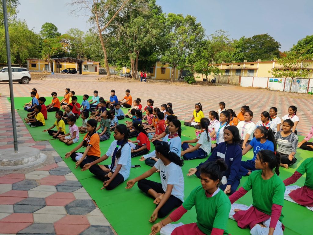 योग दिवस की थीम वसुधैव कुटुंबकम है जो संपूर्ण विश्व को भाईचारे की प्रेरणा देता है ,इस परिप्रक्षय में संस्था की गाइड व रेंजर विंग के बच्चों कृष्णा, दिशा,आसमा, करीना,काजल,रोशनी कुष्मिता,वंदना ने सूर्य नमस्कार , विभिन्नपिरामिड ,ताड़ासन उष्ट्रासन,अर्ध चक्रासन, वृक्षासन,नटराजसन, आदि के माध्यम से सभी को योग का संदेश दिया। अंग्रेजी माध्यम की आठवीं की छात्रा मौली जैन और छात्र जतिन ने विभिन्न कठिन योगासनों का भी प्रदर्शन किया। संस्था की एनएसएस। एनसीसी की छात्राएं यमुना टिकेश्वरी, दिलेश्वरी ,रेणुका लक्ष्मी, बेबीका ने भी विभिन्न योगाभ्यास किए ।