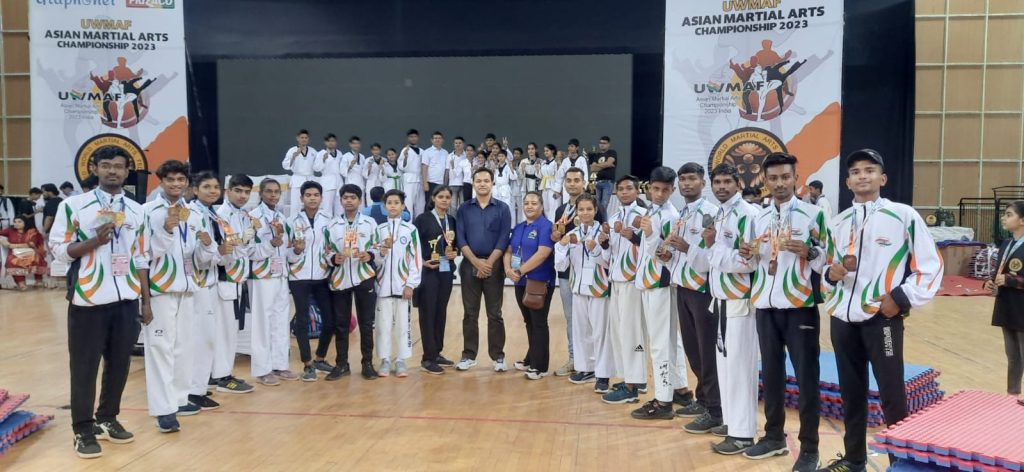 बालोद। 21 से 23 जुलाई को एशियन मार्शल आर्ट्स प्रतियोगिता आयोजन त्यागराज स्पोर्ट्स कॉम्प्लेक्स नई दिल्ली में आयोजित हुआ। यह प्रतियोगिता यूनाइटेड वर्ड मार्शल आर्ट्स फेडरेशन एशिया (यू डब्ल्यूएम एफ ए) के तत्वाधान में आयोजित किया गया। जिनमें 700 एशियन प्रतिभागी भाग लिए जिनमें ताइक्वांडो प्रतियोगिता में छत्तीसगढ़ में 19 प्रतिभागी शामिल हुए साथ ही साथ ताइक्वांडो प्रतियोगिता के साथ शस्त्रांग मार्शल आर्ट्स भी भाग लिए। जिनमें 14 स्वर्ण पदक 1 सिल्वर पदक अपने नाम किए। साथ ही ताइक्वांडो प्रतियोगिता में 15 पदक 3 स्वर्ण, 2 रजत, 10 कांस्य तथा द्वितीय कांस्य रहें, यह प्रतिभागी ” जिला मार्शल आर्ट्स एकेडमी बालोद” में प्रशिक्षण लेते हैं तथा विभिन्न प्रतियोगिता में भाग लेते ही रहते हैं। यह प्रतियोगिता टीम मैनेजर वासुदेव , कोच मैनेजर यामिनी कौमार्य के शाश्वत प्रयास में सफल रहें। जिनमें डेविड साहू, डेमन राणा, गोविंद साहू, त्रिवेणी साहू, तामेश्वर साहू, मोनेश साहू, कमलेश वासनिक, खोगेश्वरी गेंदे , दुजेश साहू, काव्य ओटवानी, लक्ष्मीनारायण निषाद , गीतांश मानिकपुरी, साक्षी कांडे, लिशा महिवाल, आदित्य घिलेंद्र, सारे प्रतिभागी अंडर 14,17 तथा 17+ में खेले, जिनमें यह प्रतिभागी कुल 30 पदक अपने नाम किए, इन खिलाड़ियों की तैयारी 6 माह से लगातार तकनीकी माध्यम से कराए जा रहें थें। जिनमें कम समय में बहुत अच्छा परिणाम प्राप्त कर पाएं, प्रतिभागियों के विभिन्न पदक हासिल करना वास्तव में अत्यंत कठोर व तपस्या पूर्ण था। परंतु आज यह पदक इन खिलाड़ियों को एक स्थाई उपलब्धि अपना नाम स्वर्ण अक्षरों में अंकित करा पाएं। इन प्रतिभागियों को प्रेरित करने के लिए क्षत्रिय खेल अकादमी बालोद के अध्यक्ष डॉ. विजय क्षत्रिय, उपाध्यक्ष देवेंद्र साहू, इंद्र सेन सिन्हा, परमेश्वर देवहरि , अमित कोरी समस्त खिलाड़ियों के माता पिता तथा सम्पूर्ण जिला मार्शल आर्ट्स एकेडमी बालोद के खिलाड़ियों द्वारा बस स्टैंड बालोद में जमकर स्वागत तथा बधाई दिए।