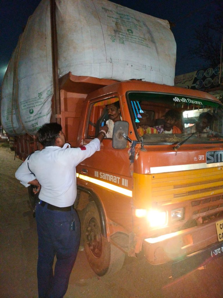 बालोद पुलिस की आम नागरिको से अपील यातायात नियमों का करे सम्मान, हेलमेट सीट बेल्ट का लगाकर ही चलाएं वाहन। पुलिस अधीक्षक बालोद डॉ. जितेन्द्र कुमार यादव के निर्देशन पर, अतिरिक्त पुलिस अधीक्षक श्री सुशील कुमार नायक के मार्गदर्शन में यातायात पुलिस बालोद द्वारा दिनांक 16 अगस्त को लापरवाह वाहन चालकों के विरूद्व विशेष मोटरयान चेकिंग किया गया। इस विशेष मोटर वाहन चेकिंग अभियान के दौरान आम जनों एवं वाहन चालकों को यातायात नियमों के पालन करने की समझाईश दिया गया एवं नियमों के उल्लंघन करते पाएं जाने पर 20 लापरवाह चालकों के विरूद्व कार्यवाही कर 10,500 रू. जुर्माना वसूल किया गया। एक शराब सेवन कर बिना फिटनेश के वाहन चलाते पाएं जाने वाले चालक के विरूद्व कार्यवाही कर माननीय न्यायालय पेश किया गया माननीय न्यायालय द्वारा आरोपी चालक भेषकरण पिता गुमान सिंह उम्र 35 साल साकिन सांकरी लाटाबोड़ थाना व जिला बालोद को 12,000 रू अर्थदण्ड एवं आरोपी वाहन मालिक नान्टू राय पिता स्वपन राय उम्र 30 वर्ष साकिन 11 पी.वी.-115 सत्यानन्दपुर, सत्यानन्द नगर, कांकेर जिला कांकेर को 2,000 रू. अर्थदण्ड से कुल 14,000 रू. अर्थदण्ड से दण्डित किया गया है। बालोद पुलिस की शराबी वाहन चालको पर लगातार कार्यवाही जारी रहेगी।