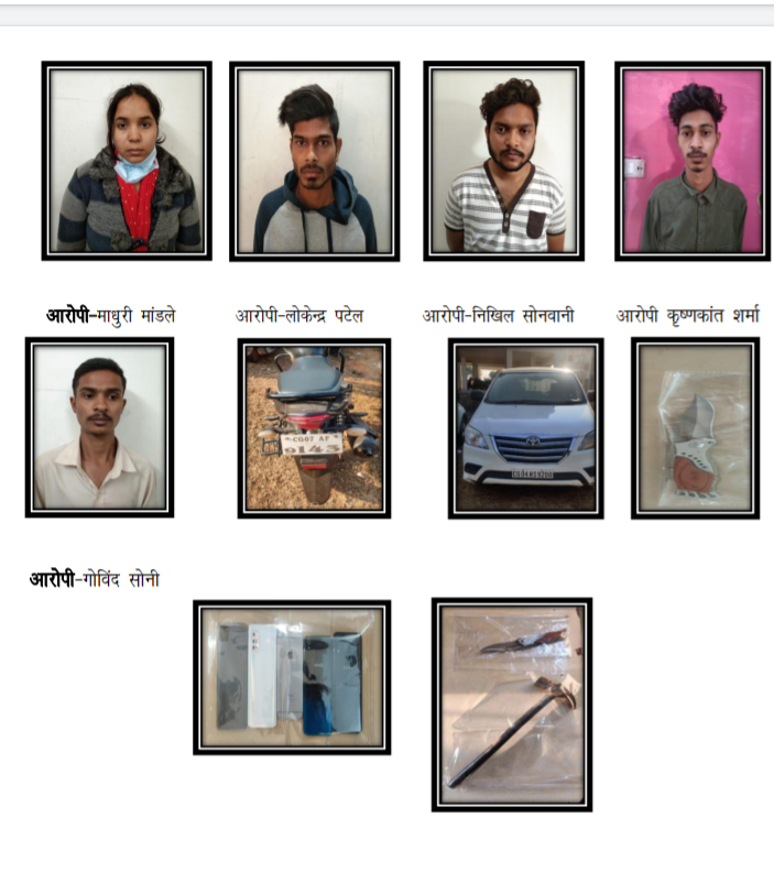 हिमांशु मांडले के मरने पश्चात मृतक का मोबाईल तथा घटना में प्रयुक्त हथौड़ी को तांदुला डेम में फेंक दिये। फिर आरोपियों द्वारा स्कूटी पर लोकेन्द्र कृष्णकांत शर्मा उर्फ गोलू एवं 01 नाबालिग तथा मोटर सायकिल में निखिल सोनवानी गोविंद सोनी व 01 नाबालिग सवार होकर बस स्टैण्ड आये। स्कूटी में सवार नाबालिग का उंगली कटा हुआ था जिसका खून का निशान वापस आते समय स्कूटी में भी था। लोकेन्द्र पटेल द्वारा स्कूटी को बस स्टैण्ड बालोद के सामने झाड़ी में छुपा कर रख दिया था। इस बीच आरोपी लोकेन्द्र पटेल का निखिल सोनवानी के साथ पैसे के संबंध में बात किये जिस पर आरोपी लोकेन्द्र पटेल मौके पर 1000-रूपये निखिल सोनवानी को दिये तथा बाकी रकम बाद में व्यवस्था कर देने कहा। रायपुर से आये सभी आरोपी इनोवा कार जो पहले से बस स्टैण्ड में खड़ा था से वापस रायपुर चले गये। अगले दिन निखिल सोनवानी द्वारा पैसे के बारे में पुनः लोकेन्द्र पटेल को फोन कर पूछा तब लोकेन्द्र पटेल द्वारा मृतक हिमांशु की पत्नी माधुरी मांडले से लेकर बाद में देना बताया। आरोपी लोकेन्द्र पटेल के निशानदेही पर उप निरीक्षक शिशिर पाण्डेय और उप निरीक्षक कैलाश मरई के साथ थाना बालोद की पुलिस टीम रायपुर रवाना की गई। रायपुर पुलिस तथा सायबर सेल की मदद से सभी आरोपियों को पकड़ा गया तथा घटना में प्रयुक्त चाकू तथा अन्य सामग्रियों की जप्ती की गई। आरोपियों को रायपुर से बालोद लाया गया। आरोपियों के निशानदेही पर घटना में प्रयुक्त हथौड़ी को तांदुला डेम से विधिवत् जप्त किया गया। प्रकरण में सभी आरोपियों को गिरफ्तार किया गया है।