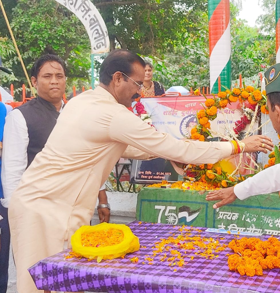 बालोद। कारगिल युद्ध के अमर शहीद जवान दुर्वासा लाल निषाद के गृह ग्राम देवरी (ख) में आज शहीद दिवस मनाया गया। आज ही के दिन 1998 में कारगिल में देश की रक्षा करते हुए दुर्वासा वीरगति को प्राप्त हुए थे। कार्यक्रम में संसदीय सचिव एवं गुंडरदेही विधायक श्री कुंवर सिंह निषाद शामिल होकर शहीद दुर्वासा की प्रतिमा पर माल्यार्पण किया। इस दौरान दीप प्रज्वलित कर श्रद्धांजलि दी। इसके उपरांत शहीद के माता श्रीमती बोधनी बाई निषाद और पिता श्री मुन्नी लाल निषाद का सम्मान किया। कार्यक्रम के दौरान श्री निषाद ने शहीद मंच के टीन शेड और गांव में सीसी रोड के लिए भूमिपूजन किया। इस दौरान उन्होंने सभा को संबोधित करते हुए कहा कि दुर्वासा पर पूरे देश को नाज है। कम उम्र में ही देश की सेवा करने और इस मिट्टी पर मर मिटने का सौभाग्य बहुत कम लोगों को मिलता है। इस दौरान जिला पंचायत अध्यक्ष सोनादेवी देशलहरा, श्री एन.के. राठी, जनपद सदस्य श्रीमती पायल शर्मा, श्री पवन कुमार निषाद, श्री अनिल देशमुख, श्री हरप्रीत सिंह, श्री राजेंद्र निषाद, श्री डॉक्टर घनश्याम निषाद, श्री खिलेंद्र साहू सरपंच, श्रीमती आशु बाई गायकवाड के साथ अतिथिगण मौजूद रहे।