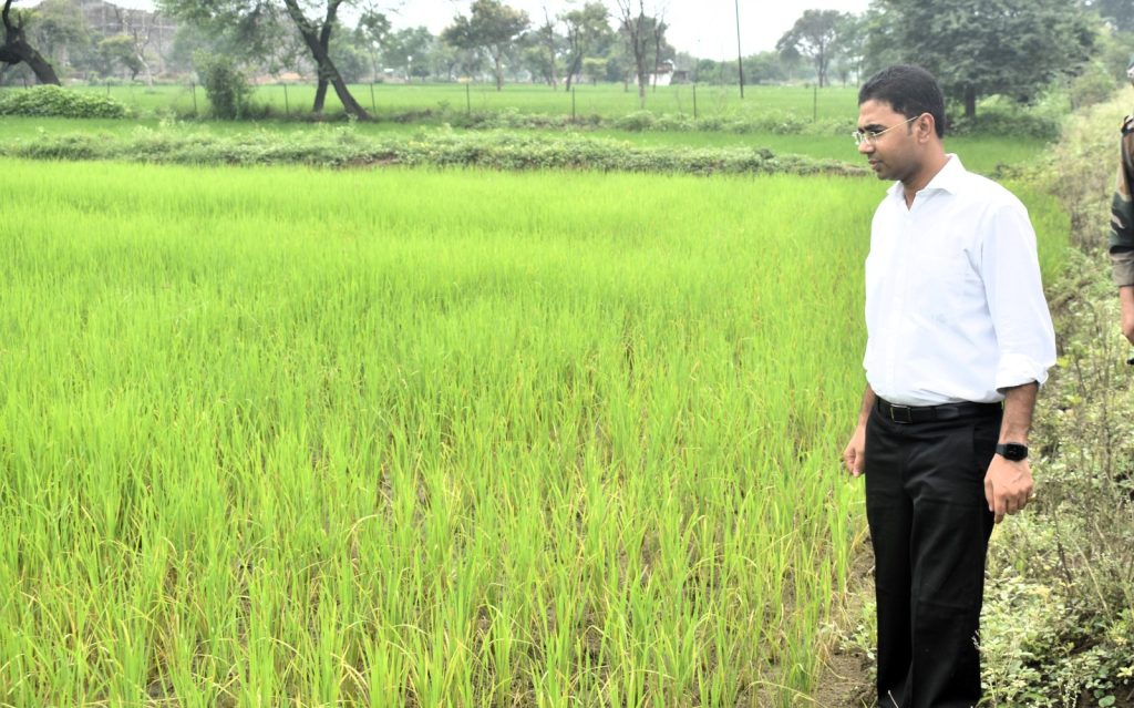 बालोद। कलेक्टर श्री कुलदीप शर्मा ने बुधवार 13 सितंबर को जनपद पंचायत गुण्डरदेही के महात्मा गांधी ग्रामीण औद्योगिक पार्क कांदूल एवं ग्राम अर्जुनी टिकरी में किसान के खेत में राजस्व विभाग के अधिकारी-कर्मचारी द्वारा किए जा रहे गिरदावरी के कार्य का निरीक्षण किया।