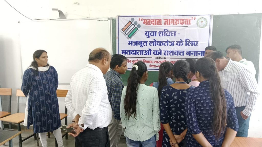 अर्जुन्दा। 22 सितंबर कलेक्टर एवं जिला निर्वाचन अधिकारी कुलदीप शर्मा के निर्देशानुसार विद्यार्थियों को ई.व्ही.एम. एवं वीवीपेट के कार्य पद्धति के संबंध में जानकारी देने हेतु आज जिले के शहीद दुुर्वासा निषाद शासकीय महाविद्यालय अर्जुंदा में ई.व्ही.एम. एवं वीवीपेट का प्रदर्शन किया गया।