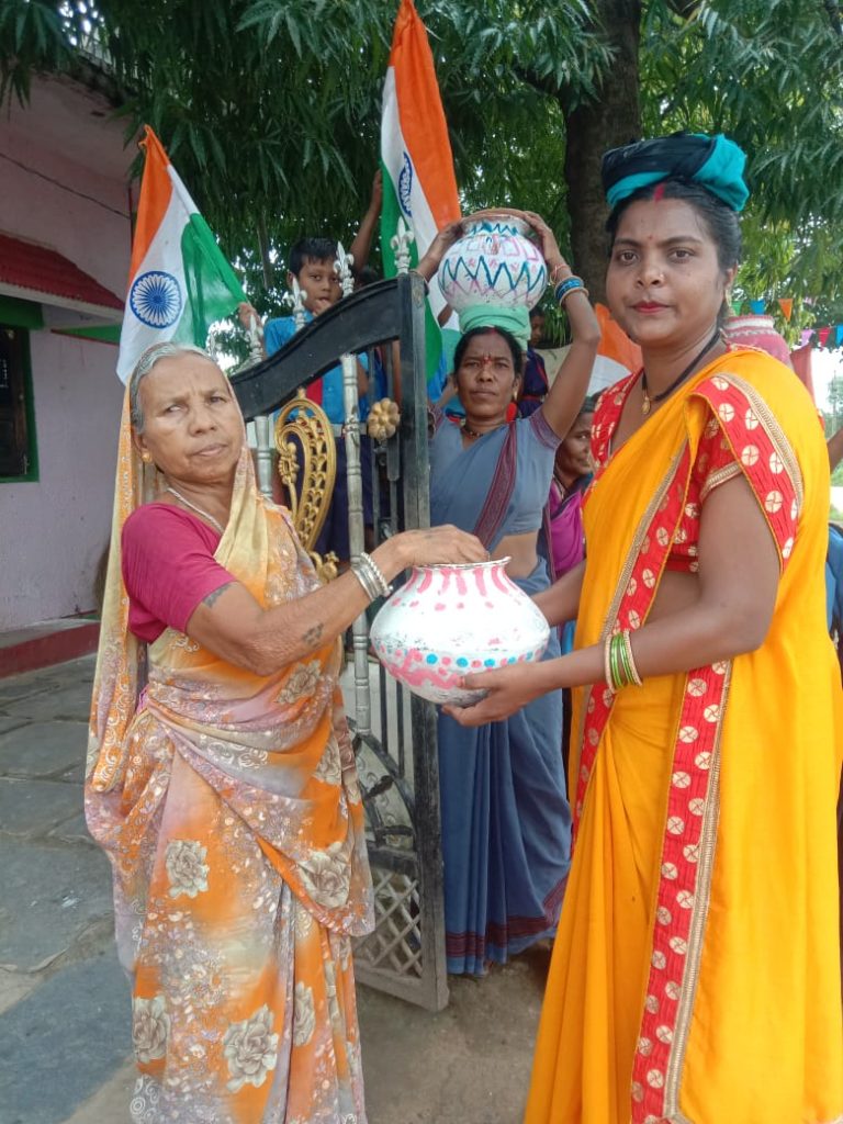 गांव के हर घर से कलश में मिट्टी लेकर गांव में ही पौधा रोपण किया गया।