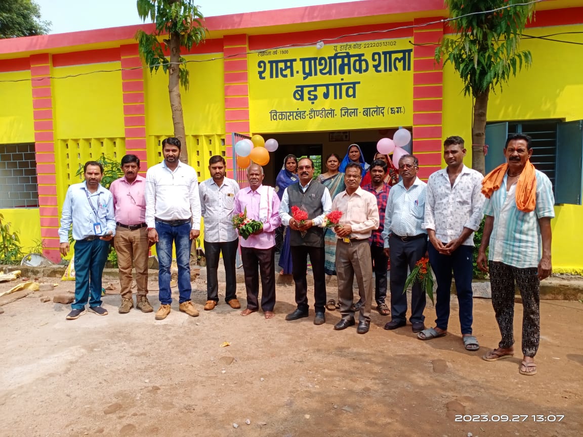 बालोद। पिछले 5 साल से चली आ रही समस्या का समाधान इस वर्ष मुख्यमंत्री जतन योजना के अंतर्गत शासकीय प्राथमिक शाला बड़गांव का पुनरुद्धार कार्य पूर्ण होने के उपरांत दिनांक 27 सितंबर 2023 को लोकार्पण कार्यक्रम संपन्न हुआ| इस कार्यक्रम में मुख्य अतिथि ग्राम प्रमुख के करकमलो से फीता काट कर लोकार्पण किया गया |