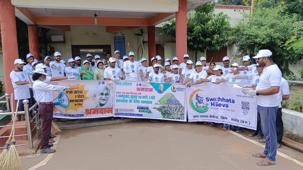 जहां नगर पंचायत डौंडीलोहारा के गार्डन , पौनी पसारी , नया बस स्टैंड , शिव मंदिर , दंतेश्वरी मंदिर गार्डन राम मंदिर प्रांगण , राजा पारा चौक और नगर के विभिन्न वार्डों में स्वच्छता अभियान चलाया गया। जिसमें डोर टू डोर कचरा कलेक्शन की बहने और नगर के आम नागरिकों ने भी बढ़-कर कर हिस्सा लिया और 2 अक्टूबर महात्मा गांधी के जयंती पर स्वच्छता पखवाड़ा मना कर नगर को स्वच्छ रखने का संकल्प लेते हुए महात्मा गांधी जी को जयंती स्वरूप पुष्पांजलि अर्पित की गई। इस वृहद स्वच्छता पखवाड़ा कार्यक्रम में नगर पंचायत डौंडीलोहारा के राजेश यादव प्रकाश कोसमा हितेंद्र ठाकुर महेंद्र बघेल ऐरावती कोलियारे दुर्जन दौवा प्रकाश ठाकुर नीलकंठ पटेल और नगर के सामान्य ज्ञान मान्य नागरिक गणों ने इस स्वच्छता पखवाड़ा पर श्रमदान करते हुए अपनी अपनी सहभागिता प्रदान की ।
