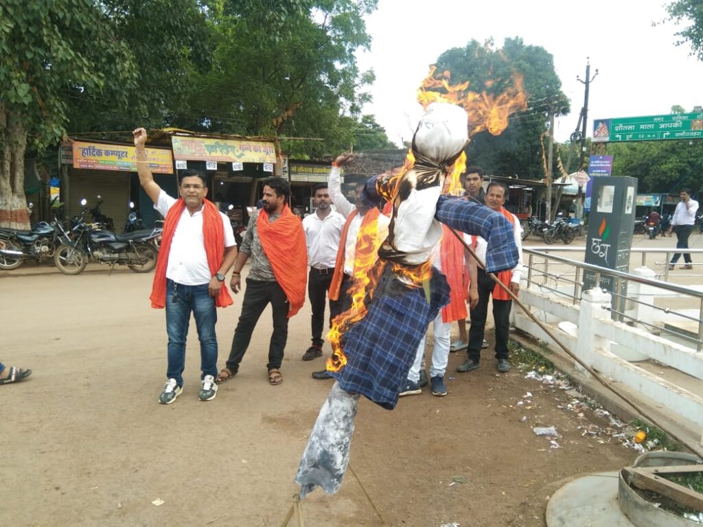 बालोद। प्रदेश में गौ हत्या और गौ तस्करी के बढ़ते अपराध के ख़िलाफ़ शिवसेना पार्टी द्वारा जिला मुख्यालय बालोद के जय स्तंभ चौक पर सांकेतिक पुतला दहन किया गया।