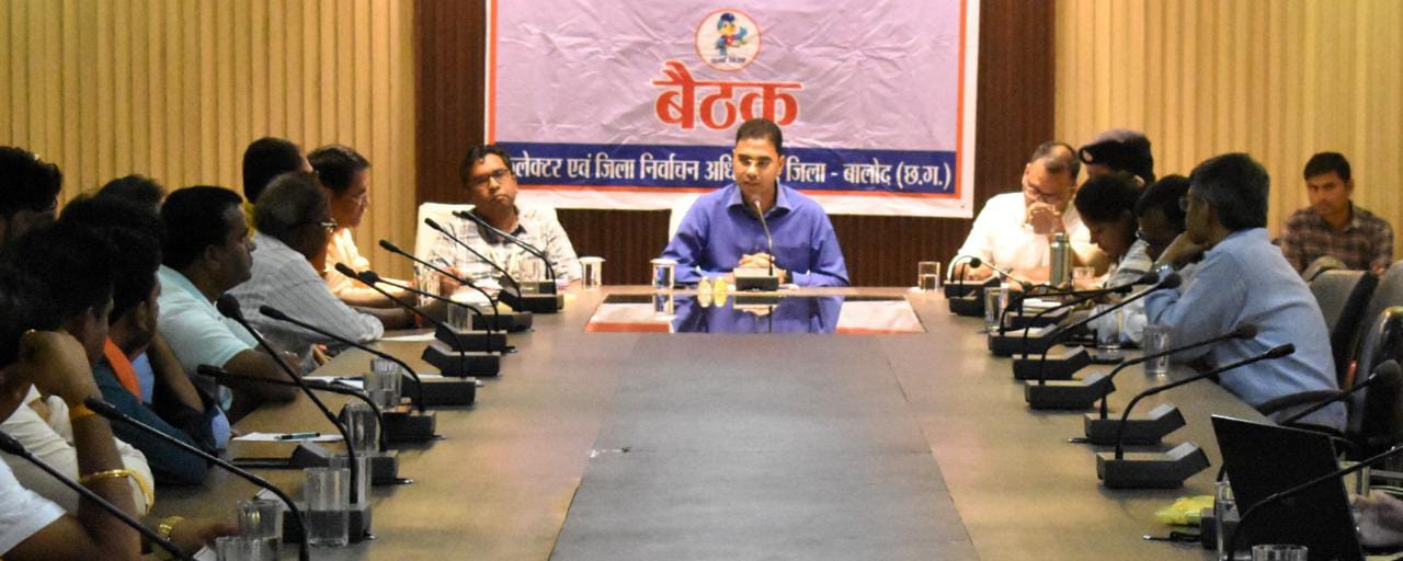 बालोद। कलेक्टर एवं जिला निर्वाचन अधिकारी श्री कुलदीप शर्मा ने बालोद जिले के सभी राजनैतिक दलों के प्रतिनिधियों को आपसी समन्वय एवं सद्भावना के साथ निर्वाचन संपन्न कराने में सहयोग करने को कहा है। जिससे की बालोद जिले में निर्विघ्न एवं शांतिपूर्ण ढंग से निर्वाचन कार्य संपन्न हो सके।