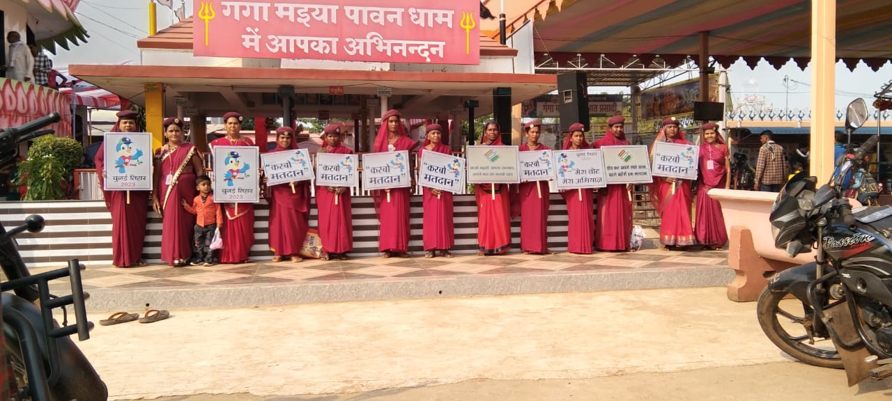 इस क्रम में गंगा मैया मंदिर में भी महिला कमांडो के द्वारा अनूठा आयोजन किया गया। गंगा मैया मंदिर में करबो मतदान के प्रति जागरूक करने का कार्य आशा देवांगन, सोहद्रा, रेखा, देवकी, राजेश्वरी, डोमेश्वरी, धनेश्वरी, प्रीति, खेमिन, शांति, बनिहारीन, लीलाबाई केंवरा बाई सहित सिवनी एवं झलमला की कमांडो ने किया। महिला कमांडो सेवा भाव से अपने कार्यों को गांधी वादी तरीके से सफलतापूर्वक पूरा करती है। करबो मतदान की थीम पर कार्य करते हुए महिला कमांडो अपने-अपने गांव में रोजाना घर-घर दस्तक दे रही है। नौजवान, बड़े बुजुर्ग से मिलकर मतदान की तिथि 17 नवंबर से अवगत करा रही है। फिर चाहे वह गांव में विराजमान माता दुर्गा का मंच हो या नवरात्रि में आने जाने वाले पद यात्री हो या गंगा मैया मंदिर झलमला में लोगों को मतदान की प्रति जागरूक कर रही है पद्मश्री शमशाद बेगम ने बताया बालोद जिला का थीम करबो मतदान में अपनी सेवाएं देकर महिला कमांडो बहुत ही उत्साहित हैं और यह मतदान की तिथि तक लगातार जन जागरूकता का कार्य जारी रहेगा। यह प्रयास करेंगे कि बालोद जिला में 100% मतदान हो सके। बोरी की महिला कमांडो भीमेश्वरी शांडिल्य कहती है हम सब महिला कमांडो हमारे जिले के कलेक्टर कुलदीप शर्मा व जिला पंचायत सीईओ रेणुका श्रीवास्तव से प्रेरणा लेते हुए अपना काम कर रहे हैं और लगातार आगे भी करते रहेंगे।