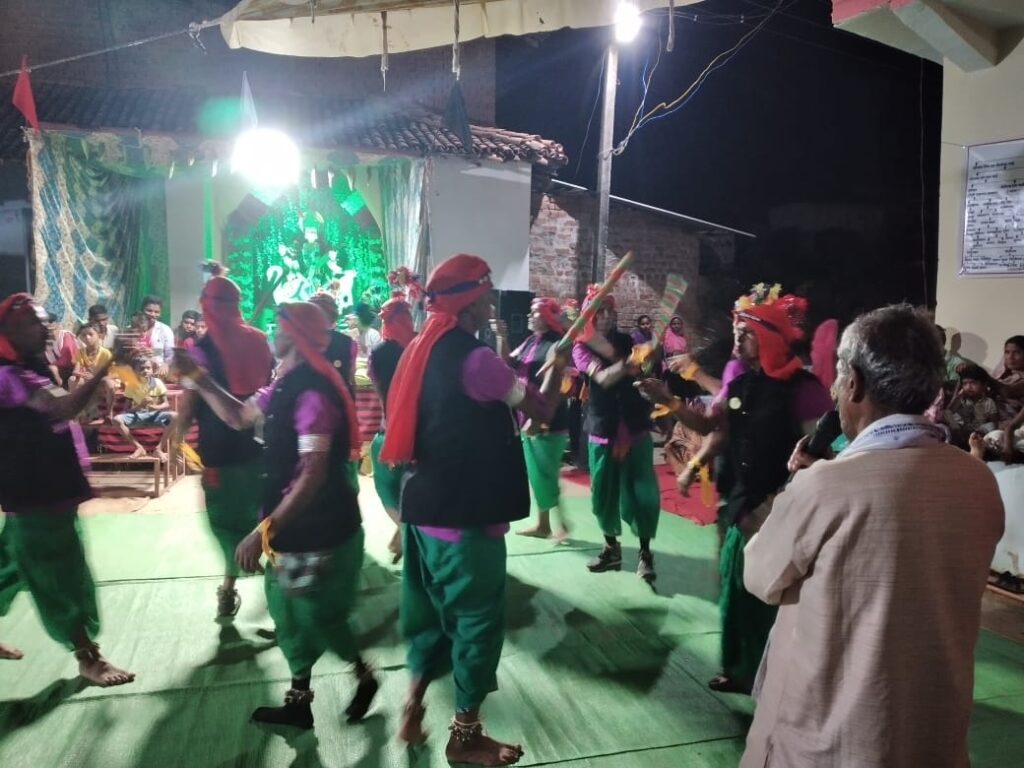 बालोद। नवरात्रि के पर्व पर देवी नवागांव में नागाडबरी का डंडा नाच का आयोजन हुआ। ग्राम में सोनवानी परिवार द्वारा जोत जंवारा षष्टमी पर नागाडबरी की डंडा नाच की प्रस्तुति हुई। आयोजक की ओर से आर के सोनवानी ने बताया कि ग्राम देवीनवागांव के लोंगो के विशेष मांग पर डंडा नाच के कलाकारों को आमंत्रित किया गया। उनके द्वारा डंडा नाच की विधाओं की प्रस्तुति में जोहरनी ,छर्रा , तिनटेहरी , खोल छर्रा एवं समधी भेंट की प्रदर्शन किया गया।