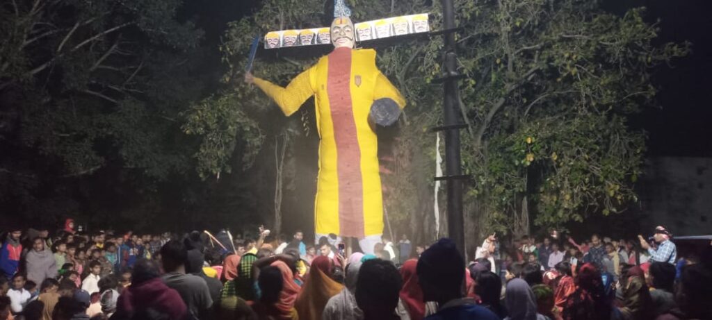 बाजार चौक के पास लगभग 30 फीट का रावण तैयार किया गया था। जहां रात 9 बजे संक्षिप्त रामलीला मंचन के साथ राम बने पात्र द्वारा दशानन का पुतला दहन किया गया।