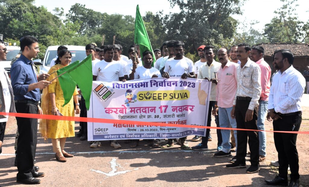 विधानसभा आम निर्वाचन 2023 के दौरान बालोद जिले में शत प्रतिशत मतदान सुनिश्चित कराने हेतु आज जिले के गुरूर विकासखण्ड के सुदूर वनांचल के ग्राम नगझर में आज वृहद मतदाता जागरूकता कार्यक्रम का आयोजन किया गया।