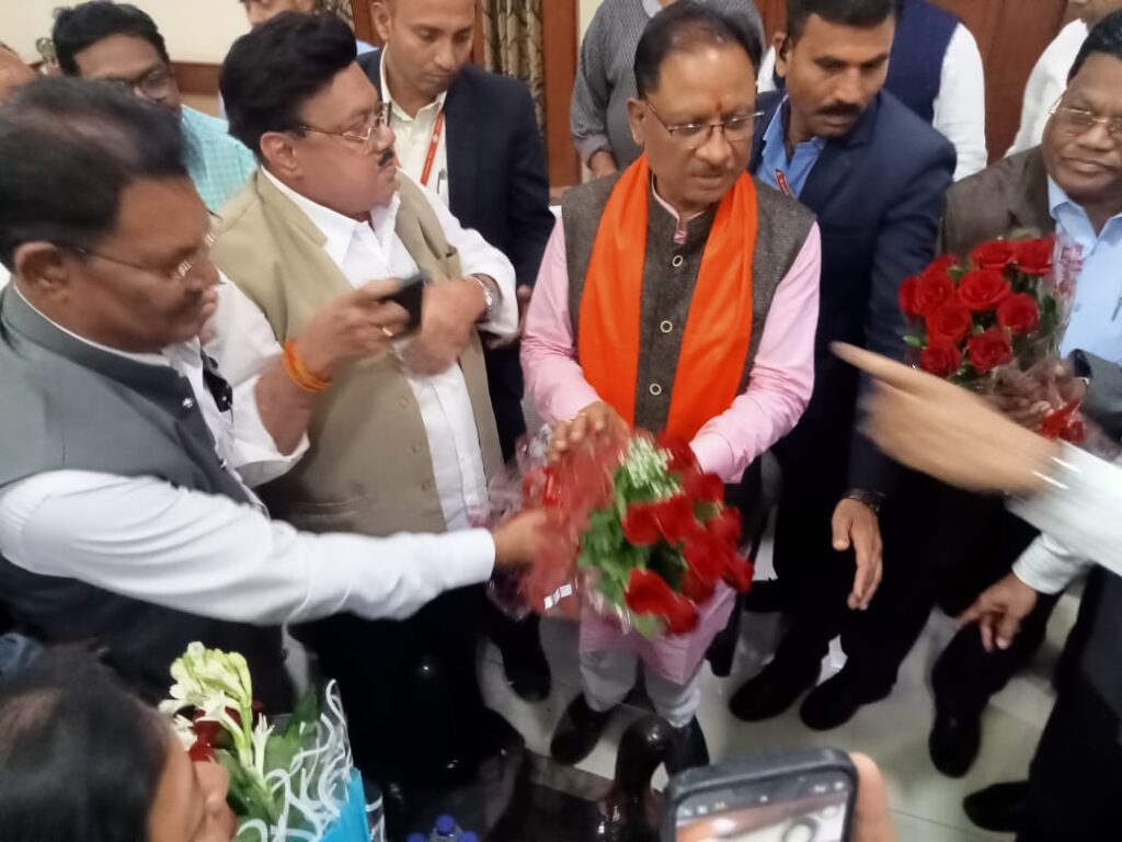 सभी ने मुख्यमंत्री का गुलदस्ता भेंटकर और हार पहना कर स्वागत किया।