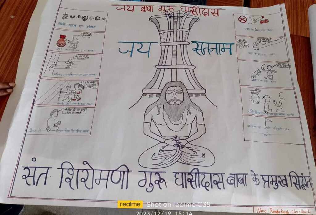 परम पूज्य संत शिरोमणि बाबा गुरु घासीदास जी की जयंती के अवसर पर उनके जीवन दर्शन पर आधारित महाविद्यालय में रंगोली, पोस्टर और निबंध प्रतियोगिता का आयोजन किया गया।