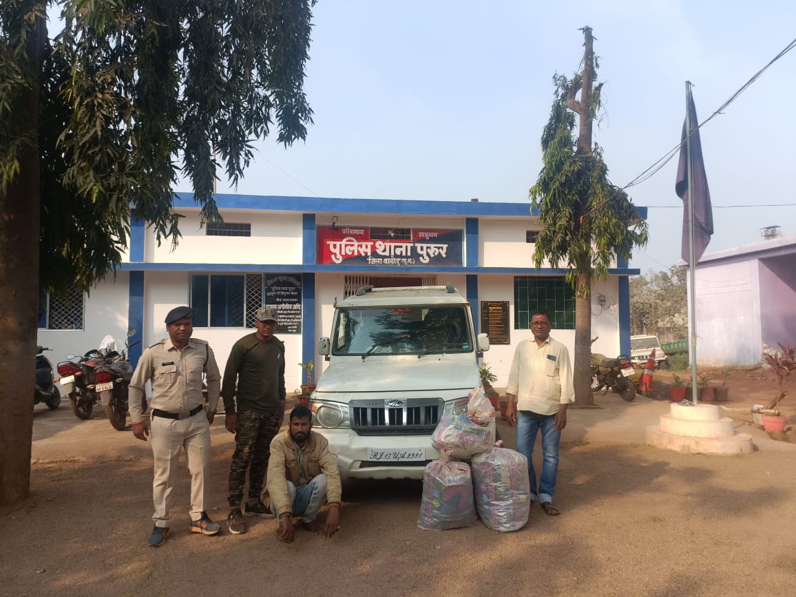 गुरुर। पुरूर पुलिस ने गांजा तस्करी करते आरोपी राकेश राठौर पिता कवर लाल राठौर जाति तेली उम्र 31 वर्ष निवासी ग्राम सिलेहगढ थाना मिसरौली तहसील पंचपहाड जिला झालावाड (राजस्थान) को पकड़ा है। एसपी जितेन्द्र यादव, एएसपी सुशील कुमार नायक के मार्गदर्शन में एसडीओपी गुरूर बोनीफास एक्का के निर्देशन में थाना प्रभारी पुरूर निरीक्षक शिशुपाल सिन्हा के नेतृत्व में पुलिस की टीम को अवैध मादक पदार्थ गांजा के परिवहन करने वाले 01 आरोपी को गिरफ्तार करने में सफलता मिली। 28 दिसंबर .2023 को मुखबीर से सुचना मिला था कि एक सफेद रंग की महिन्द्रा बोलेरो वाहन कमांक RJ-17-UA-2381 का चालक अपने वाहन में अवैध मादक पदार्थ गांजा छिपाकर रखा हुआ है। जिसे कोण्डागांव की ओर से केशकाल कांकेर के रास्ते रायपुर की ओर लेकर जा रहा है। सूचना पर ग्राम जगतरा दुर्गा मंदिर के पास एन एच 30 मार्ग के पास आने जाने वाले वाहनों की चेकिंग की जा रही थी। कुछ समय बाद मुखबीर के बतायेनुसार एक सफेद रंग की महिन्द्रा बोलेरो वाहन आया। जिसे इशारा कर रूकवाया गया। जो वाहन को रोककर गाडी से उतरकर भागने का प्रयास कर था। जिसे स्टाफ ने घेराबंदी कर पकड़ा। जिसे नाम पता पूछने पर राकेश राठौर राजस्थान का रहने वाला बताया। जिनके वाहन की तलाशी लेने पर वाहन की पिछली सीट के नीचे लोहे का गुप्त चेंम्बर बना हुआ मिला। चेम्बर के अंदर भूरे रंग के सेलो टेप से लिपटा हुआ 06 पैकेट अवैध मादक पदार्थ गांजा कुल वजनी 41 किलोग्राम कीमती 4 लाख 10,000/ रूपये एवं घटना में प्रयुक्त वाहन को जप्त कर आरोपी के विरूध्द धारा 20 (ख) एनडीपीएस कायम कर विवेचना कार्यवाही में लिया गया। तथा आरोपी को न्यायिक रिमाण्ड पर जेल दाखिल किया गया।उक्त प्रकरण में पुलिस थाना पुरूर प्रभारी निरीक्षक शिशुपाल सिन्हा, सउनि रूपेश्वर राम भगत, आरक्षक लिखन साहु, किशोर साहू, संदीप यादव, गुणेश यादव, सुरेश पटेल, उमाशंकर जारके, थनेन्द्र देवांगन, लोकेश करीयाम, कुलदीप नागवंशी, छोटू सोनकर की सराहनीय भूमिका रही।