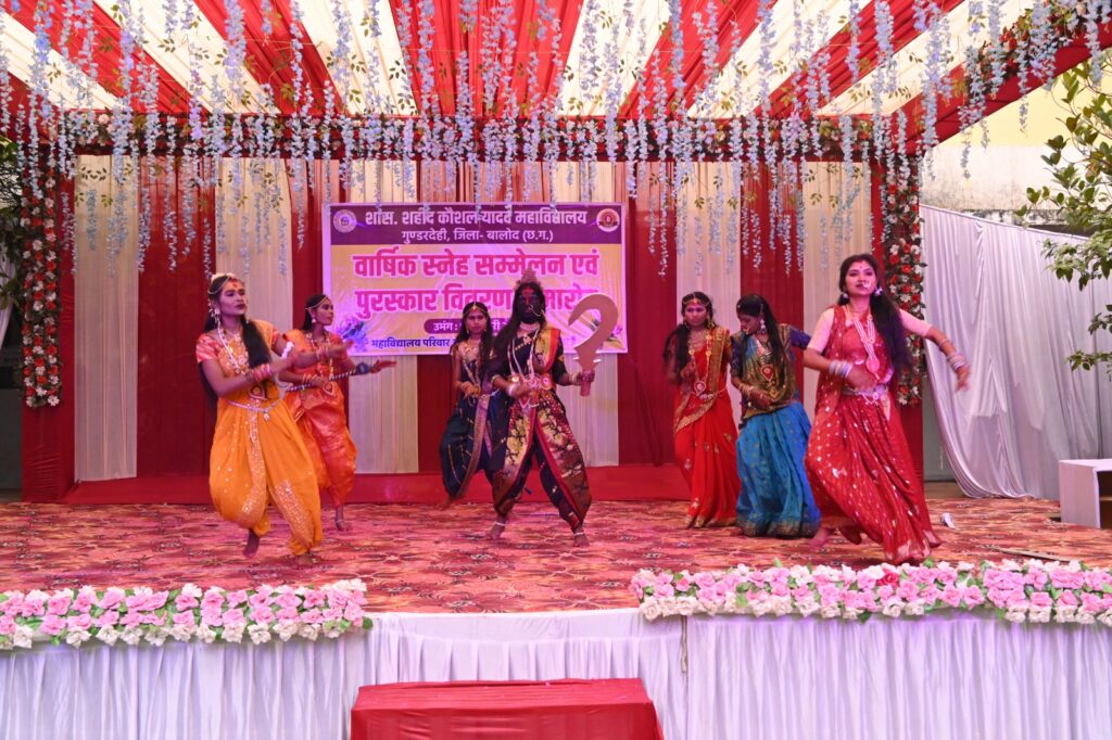 साथ ही आने वाले समय में महाविद्यालय के विकास में मिलकर कार्य करने का भरोसा दिलाया। जनभागीदारी प्रबंधन समिति के पूर्व अध्यक्ष श्री संजय साहू अपने पांच वर्ष के कार्यकाल में महाविद्यालय में हुए विकास कार्यों की जानकारी दी जिसमें पहली बार नैक मूल्यांकन किया जाना, बाउण्ड्रीवाल का निर्माण, सहित नये विषयों का खुलना आदि उपलब्धियाँ रही। महाविद्यालय के प्राचार्य डॉ.डी.आर.मेश्राम ने प्रतिवेदन प्रस्तुत करते हुए बताया कि पिछले वर्ष महाविद्यालय को नैक द्वारा 2.24 सीजीपीए के साथ “बी” ग्रेड प्रदान किया गया साथ ही साथ इस वर्ष महाविद्यालय में एम.कॉम, हिन्दी-साहित्य, गणित, भौतिकी एवं जन्तुविज्ञान की कक्षाएं भी आरंभ हुई है जो कि महाविद्यालय की एक बड़ी उपलब्धि है। साथ ही साथ प्राचार्य ने जनप्रतिनिधियों को सहयोग के लिए धन्यवाद कहा जिनके सहयोग से महाविद्यालय में अधोसंरचना एवं नवीन विषय एवं पद का सृजन हो पा रहा है। इस कार्यक्रम की अध्यक्षता श्रीमती रानू हेमन्त सोनकर, अध्यक्ष, नगर पंचायत, गुण्डरदेही ने किया। इस अवसर पर श्री दिलीप यादव, श्री नरेश सेन, श्री जागेश्वर कुर्रे, श्री विजय कश्यप, चन्द्रिका चन्द्राकर, श्री हेमन्त सोनकर की गरिमामयी उपस्थिति से छात्र-छात्राओं का उत्साहवर्धन हुआ। इस अवसर पर आयोजित सांस्कृतिक कार्यक्रम में छात्र-छात्राओं ने अपनी प्रतिभा का लोहा मनवाया। पंथी, कर्मा, सुवा नृत्य के माध्यम से छत्तीसगढ़ी संस्कृति की गौरवशाली परम्परा को प्रस्तुत किया। इस कार्यक्रम का संचालन महाविद्यालय के वरिष्ठ सहायक प्राध्यापक डॉ.के.डी.चावले एवं श्री आर.पी.निषाद ने किया। धन्यवाद ज्ञापन वरिष्ठ सहायक प्राध्यापक श्री डी.एस.सहारे ने किया इस अवसर पर सहायक प्राध्यापक डॉ.अभिषेक कुमार पटेल, डॉ. आशीष कुमार भुई, सांस्कृतिक प्रभारी सुश्री शिखा श्रीवास्तव, श्री भूपेन्द्र कुमार एवं समस्त अतिथि व्याख्याताओं सहित बड़ी संख्या में महाविद्यालय के छात्र-छात्राएं, राष्ट्रीय सेवा योजना के स्वयंसेवक, पूर्व छात्र-छात्राएं, महाविद्यालय कर्मचारी एवं नगरवासी उपस्थित थे।