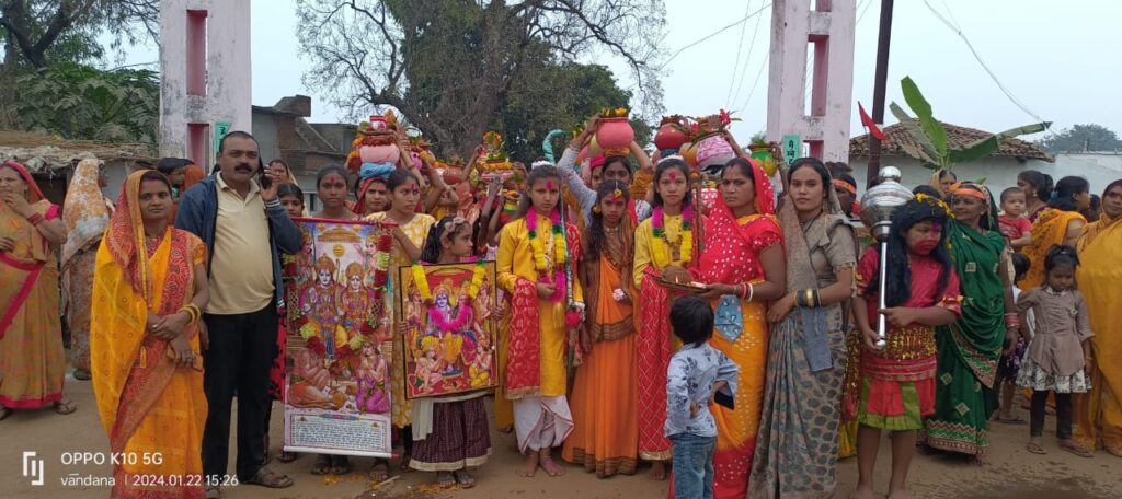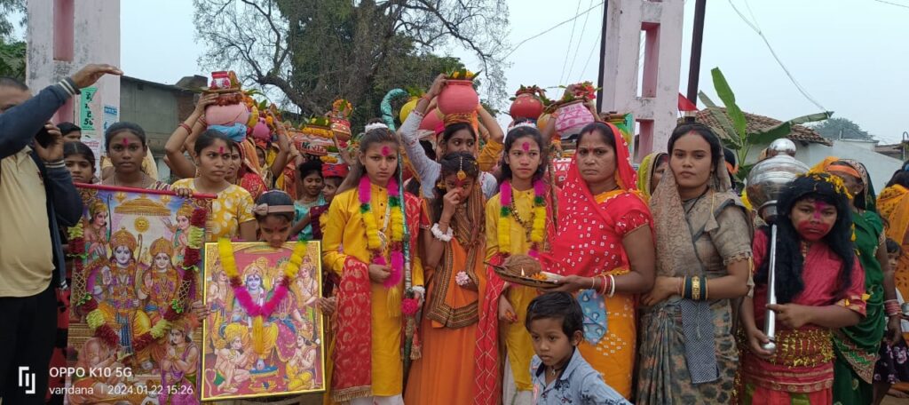 बालोद। यह तस्वीर है ग्राम परसतराई की। जहां पर अयोध्या में हुए श्री राम लला मंदिर प्राण प्रतिष्ठा पर शोभायात्रा का आयोजन किया गया था।