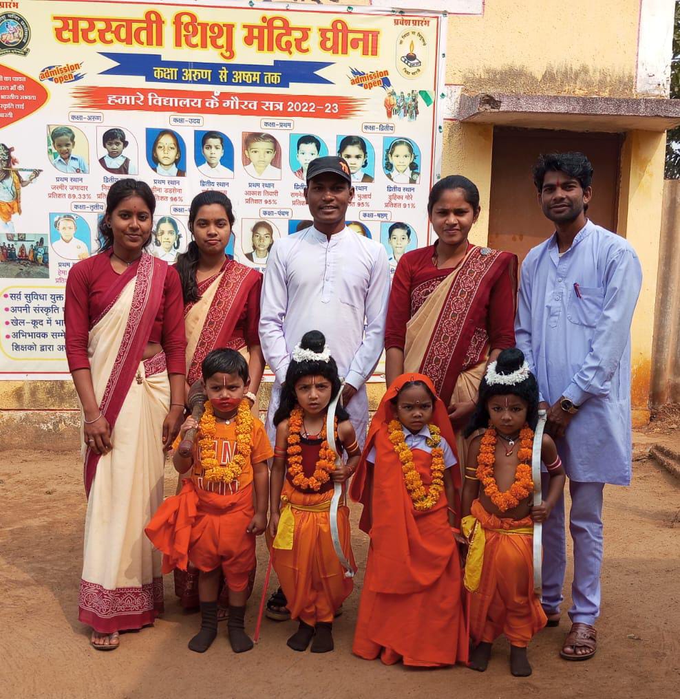 बालोद। सरस्वती शिशु मंदिर घीना में 22 जनवरी 2024 को राम प्राण प्रतिष्ठा के उपलक्ष्य में भव्य राम रैली का आयोजन किया गया। जिसमें सरस्वती शिशु मंदिर घीना के छोटे-छोटे भैया बहनों की तरफ से शानदार झांकी सजाकर विद्यालय प्रांगण से भ्रमण करते हुए राम दरबार मां जानकी मंदिर घीना से भव्य कलश शोभायात्रा के साथ गांव भ्रमण किया गया। तत्पश्चात संस्कृति कार्यक्रम एवं रात्रि में श्री तुलसी संगम मानस मंडली की कथा के साथ यह कार्यक्रम संपन्न किया गया।