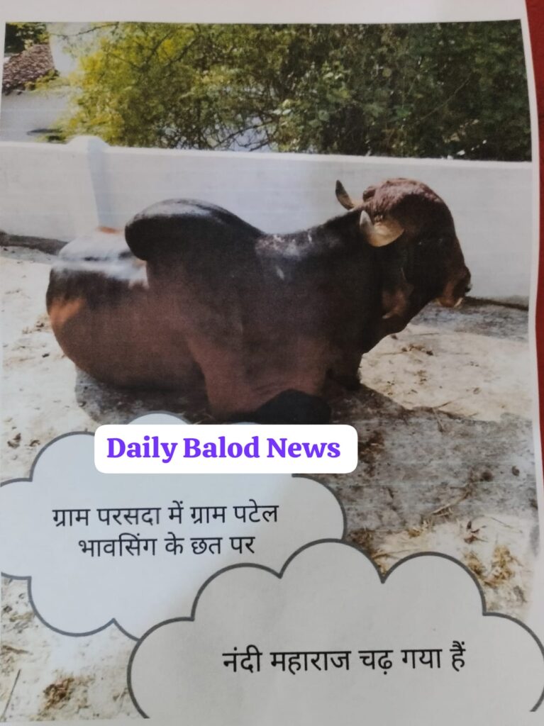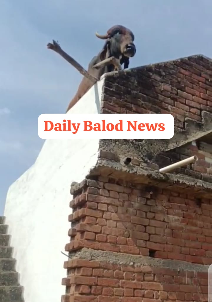 बालोद। यह तस्वीर है ग्राम परसदा (जगन्नाथपुर) की। जहां पर भावसिंहपटेल के घर की छत पर एक नंदी (सांड) चढ़ गया है। बताया जाता है कि शनिवार की रात से ये चढ़ा है। सुबह लोगों ने देखा तो जानकारी हुई। वही मामला पशु विभाग और गौ सेवको तक पहुंचा तो उसे उतारने की कोशिश की गई ।लेकिन नंदी महाराज है कि उतरने को तैयार नहीं है। सोमवार को दिनभर काफी मशक्कत जारी रहा लेकिन सफलता नहीं मिली। अब इसकी क्रेन से लैंडिंग करवाने की तैयारी हो रही है।