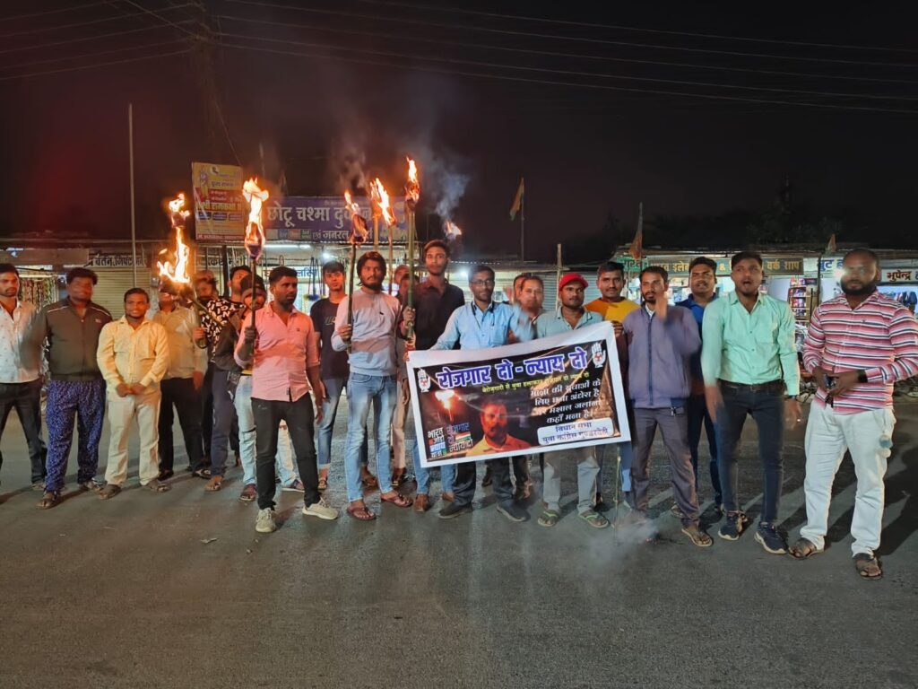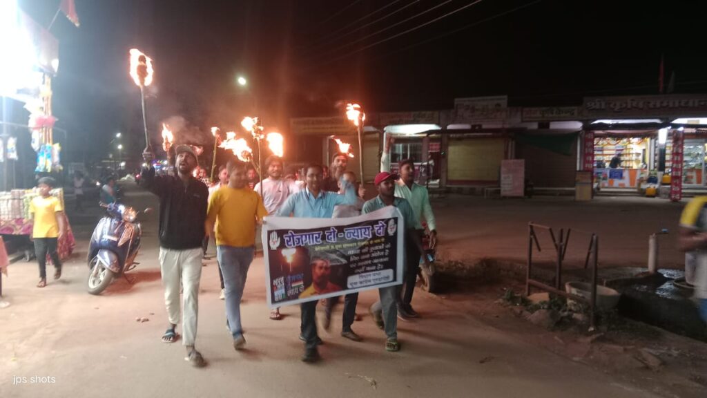 लेकिन आपकी सरकार ने तो युवाओ को अग्निविर बना दिया और उन्हें कमजोर करने का काम किया। युवा कांग्रेस ने इस मशाल जुलुस के माध्यम से आज़ देश के हर युवाओ की लड़ाई लड़ने सड़को पर रोजगार दो, न्याय दो, के नारे को लेकर उतरी है। इस अवसर पर ब्लॉक कांग्रेस सचिव भूपेन्द्र साहू, जिला युवा कांग्रेस सचिव शिवेंद्र देशमुख, विधानसभा युवा कांग्रेस महासचिव मुकेश साहू, उपाध्यक्ष छत्रपाल साहू, चित्रांश गेंद्रे, जनक साहू, श्यामसुंदर, पंकज बराहेंन, दीपेंद्र सेन, अजय सेन प्रवीण साहू, गोवर्धन देवांगन, मुकेश ठाकुर, मनीष टंडन, बुधेलाल सिन्हा, सुधा सिन्हा, टोमेश तारम, जयंत देशमुख, प्रशांत देशलहरा, चंदन देशमुख, देवा ठाकुर, भूषण साहू, सहित अन्य कार्यकर्ता उपस्थित रहे।