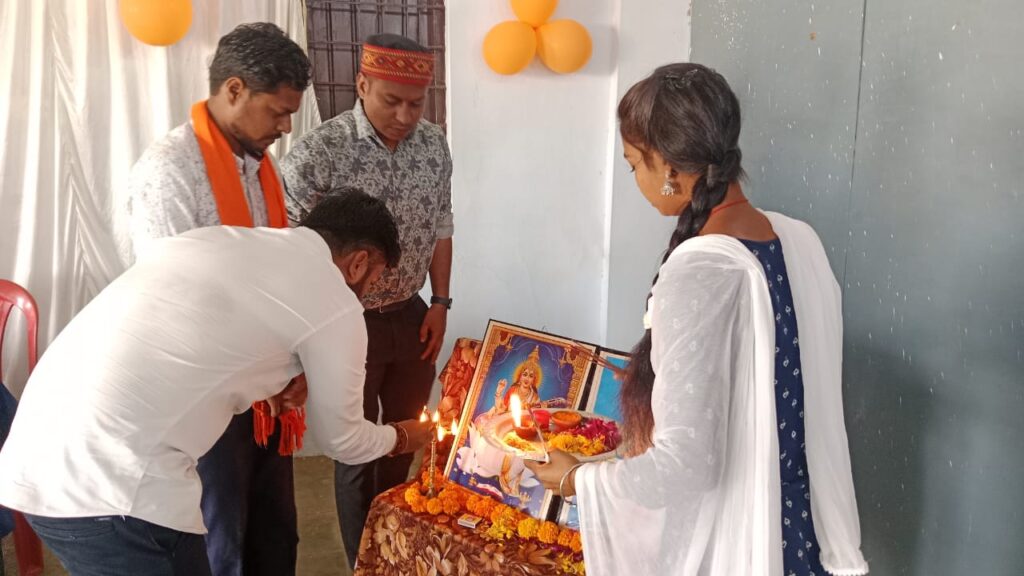 कार्यक्रम का शुभारंभ मां सरस्वती एवं स्वामी विवेकानंद जी के छायाचित्र पर पूजा-अर्चना माल्यार्पण व दीप प्रज्जवलित कर कार्यक्रम का शुभारंभ किया गया। उसके पश्चात राज्य गीत गाया गया।