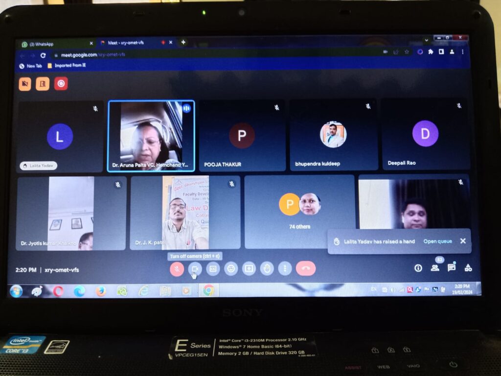 बालोद। शासकीय घनश्याम सिंह गुप्त स्नातकोत्तर महाविद्यालय बालोद में विधि विभाग द्वारा एक सप्ताह का फैकल्टी डेवलपमेंट प्रोग्राम आभाषी मोड में दिनांक 19/02/2024 से प्रारंभ हुआ।