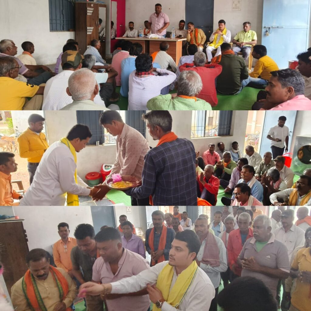 जिसमें विधानसभा प्रभारी सोमेश सोरी सहप्रभारी हीरा ठाकुर प्रमुख रूप से मौजूद रहे। बैठक में मुख्य रूप से लोकसभा चुनाव को लेकर सारगर्भित चर्चा हुई व सांसद प्रत्याशी भोजराज नाग को विजय बनाने के लिए अनेक सारी चर्चाए हुई। जिसमे मुख्य रूप से विधानसभा प्रभारी व डौंडी के नगर पंचायत अध्यक्ष सोमेश सोरी , युवराज लाल निवेन्द्र सिंह टेकाम , सह प्रभारी हीरा ठाकुर जी के नेतृत्व में निरंजन पड़ोती द्वारा यह बैठक रखा गया था। जिसमे मुख्य रूप से डौंडी लोहारा मंडल अध्यक्ष रूपेश सिन्हा ,महामंत्री, डारासिंह भौसार्य , वरिष्ट कार्यकर्ता मंजू मंडावी, टेक सिंह छेदाम, सरपंच पति , माखन लाल भुआर्य, सरपंच,ललित साहू , सरपंच पुनः राम सिन्हा, रोहित धरेंद्र , ताराचंद निषाद, हरिशंकर नायक, कौशल दास मानिकपुरी,अमित कुमार , कुशल जुरेशिया, खिलावन मंडावी, राधे श्याम भंडारी, तथा समाज के ज्येष्ठ पदाधिकारी कार्यकर्ता, सदस्य आदि लोग भारी मात्रा में उपस्थित रहे।आदिवासी नेता व पूर्व विधायक स्व.लाल महेंद्र सिंह टेकाम के सुपुत्र युवराज निवेंद्र टेकाम को अपने बीच पा कर समाज में उत्साह देखने को मिला।