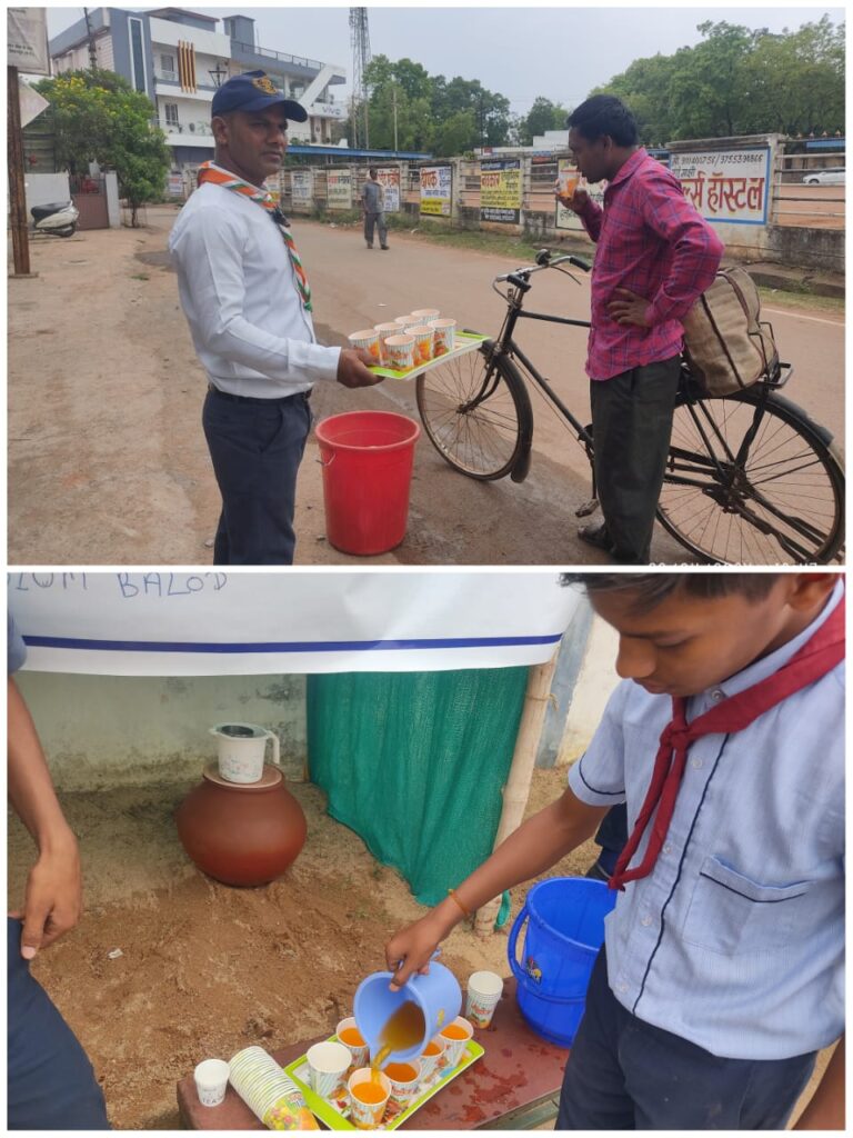 के मार्गदर्शन, सचिव विकासखंड बालोद रूपेन्द्र सिन्हा ,रोवर स्काउट लीडर नेमसिंह साहू के नेतृत्व मे स्वामी आत्मानंद उत्कृष्ट हिन्दी माध्यम विद्यालय बालोद के प्राचार्य अरुण साहू एवम जनसहयोग से संचालित प्याऊ घर में बढ़ती गर्मी को देखते हुए, राहगीरों की प्यास