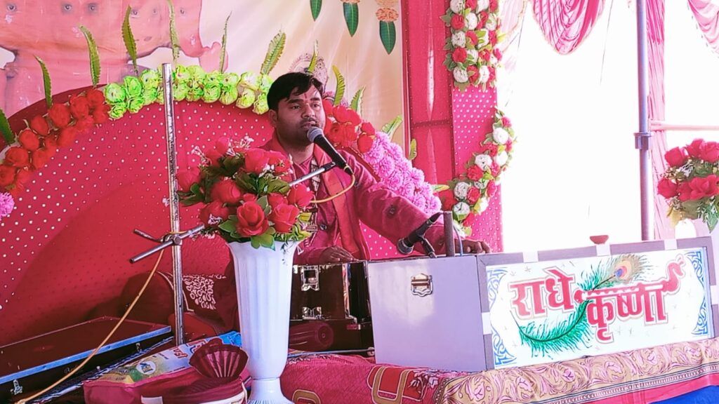 जिसमें प्रवचनकर्ता वृंदावन से कृपा प्राप्त पंडित रुपेश कृष्णा मिश्रा है। जो कि श्री श्री 1008 रवीश पांडे की कृपा पात्र शिष्य हैं। इस भागवत कथा के मुख्य