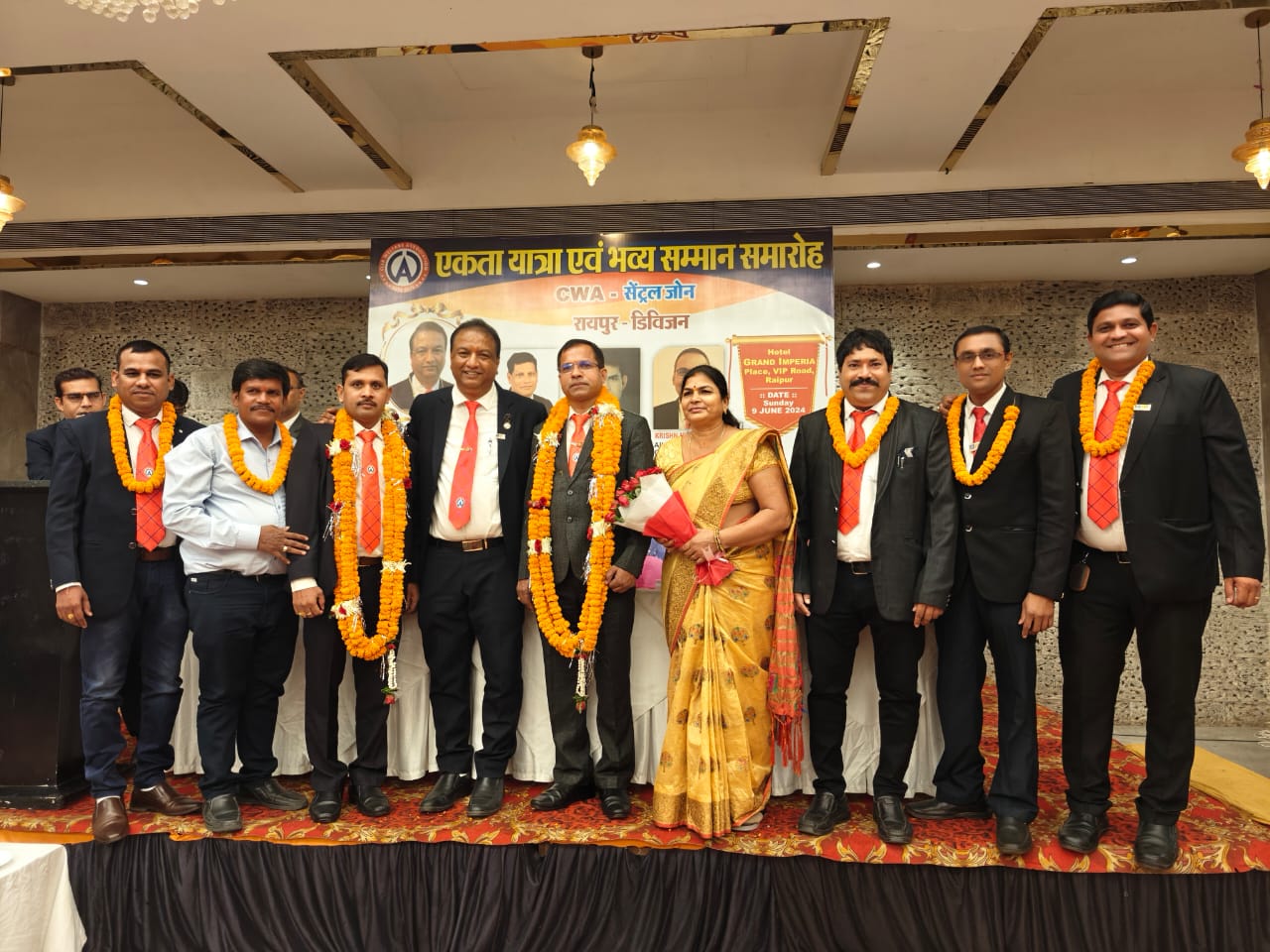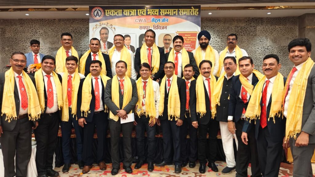 बालोद। रायपुर भारतीय जीवन बीमा निगम रायपुर मंडल के मुख्य जीवन बीमा सलाहकारों के वेलफेयर संगठन सीडबल्यूए का विगत दिनो एकता यात्रा एवं भव्य सम्मान समारोह आयोजित किया गया । जिसमें रायपुर डिवीजन के उत्कृष्ट मुख्य जीवन बीमा सलाहकारो को स्मृति चिन्ह से सम्मानित किया गया। तत्पश्यात नई कार्यकारिणी का गठन किया गया। जिसमें सर्व् सम्मति से अध्यक्ष अजीत साहू ( बालोद) , उपाध्यक्ष दुर्गेश पटेल राजनांदगांव व गजानंद वर्मा, सचिव विजय साहू भिलाई , कोषाध्यक्ष ऋषि निर्मलकर अभनपुर, उपकोषाध्यक्ष वेद प्रकाश साहू धमतरी संयुक्त सचिव शेखर साहू रायपुर व पूर्णिमा साहू राजनादगांव चुने गए। ट्रेंड द ट्रेनर रायपुर डिवीजन के चेयरमेन पद पर किशोर कराडे चुने गए।कार्यक्रम का विधिवत शुभारंभ दीप प्रज्जवलन सीडबल्यूए संगठन के राष्ट्रीय अध्यक्ष जगदीश झवर, भोपाल – ज़ोनल अध्यक्ष गिरिराज गुप्ता, मेंबर शिप कमेटी के अध्यक्ष कृष्ण मुरारी झारखंड, जोनल सचिव दिलीप तिवारी मंडला (एमपी) के द्वारा किया गया। कार्यक्रम को सभी अतिथियों ने सम्बोधित किया।