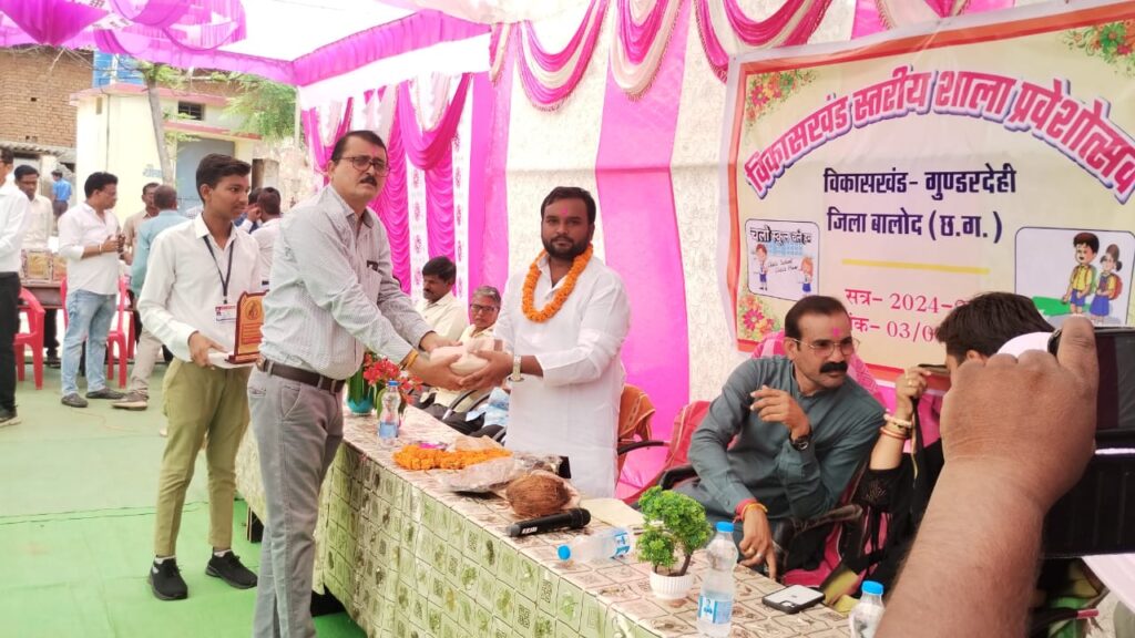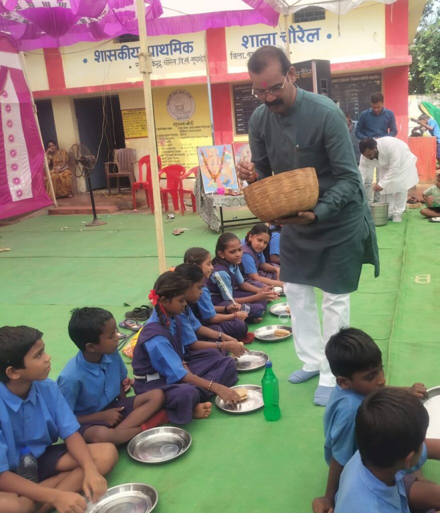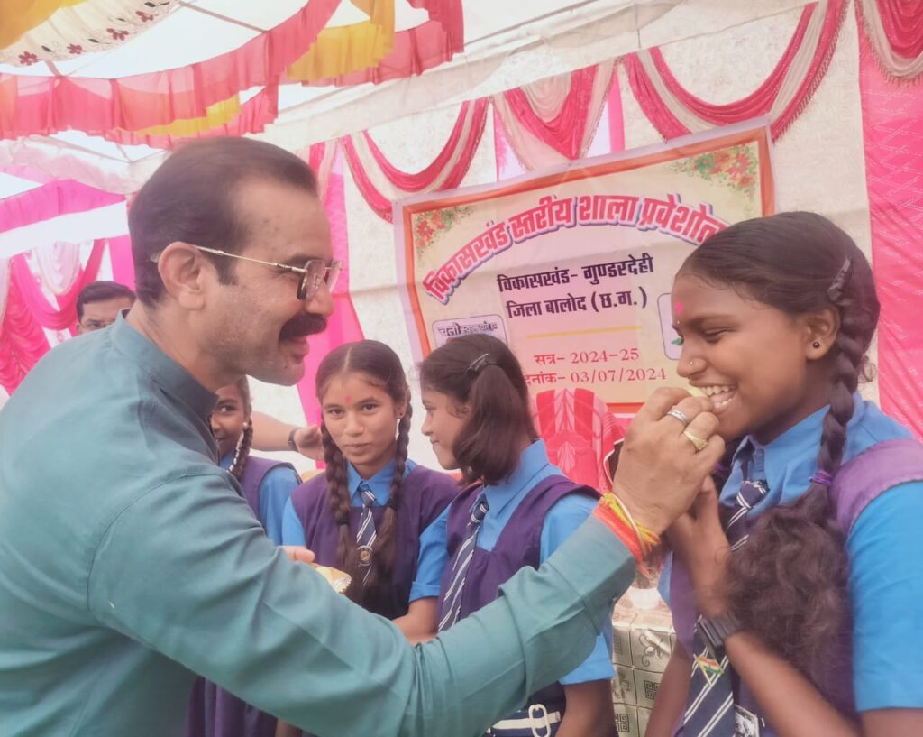 बालोद| ग्राम चौरेल में वि.ख. स्तरीय शाला प्रवेश उत्सव का आयोजन हुआ जिसके मुख्य अतिथि गुंडरदेही विधायक कुंवर सिंह निषाद थे जिन्होंने पहली, छठवीं और नौवीं कक्षा में पढ़ने वाले बच्चों को तिलक लगाकर और मिठाई खिला कर उनका स्वागत किया। शाला प्रवेश उत्सव के दौरान बच्चों को पाठ्य पुस्तक और स्कूल ड्रेस का वितरण भी किया गया। इस दौरान विधायक ने सभी विद्यार्थियों और नवप्रवेशी बच्चों को “शाला प्रवेशोत्सव” पर हार्दिक बधाई एवं शुभकामनाएं दिए और बच्चों को अपने उचित मार्गदर्शन से संस्कारवान बनाने वाले सभी शिक्षकों का भी अभिनंदन किए।