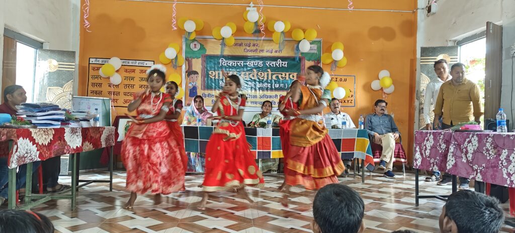 उद्बोधन में अतिथियों के द्वारा बच्चो को स्कूल आ पढ़े ब, जिनगी ल गढ़े ब की कथन को चरितार्थ करते हुए जीवन में शिक्षा के महत्व के बारे में विस्तृत रूप से बताया गया। शाला प्रवेश उत्सव तथा गणवेश वितरण के पश्चात न्योता भोज का आयोजन किया गया,जिसमे चावल, दाल,खीर,पूड़ी,केला,सेव,सलाद,पापड़ आदि खिलाया गया।उत्सव तथा न्योता भोजन से बच्चे बेहद उत्साहित नजर आए। विद्यार्थियों द्वारा शिक्षाप्रद स्कूल चले हम थीम पर सांस्कृतिक कार्यक्रम प्रस्तुत किया गया। कार्यक्रम में सेल्फी जोन बच्चो को बेहद रिझाया। एवं नव प्रवेशी बच्चो के हस्त चिन्ह भी लिए गए।शाला प्रवेश उत्सव तथा न्योता भोजन के आयोजन में संकुल समन्वयक श्री विकास ठाकुर तथा दुर्योधन मलिक का विशेष योगदान रहा। सम्पूर्ण कार्यक्रम का सफल संचालन संकुल समन्वयक वेद प्रकाश यदु एवं बसंतमणी साहू के द्वारा किया गया।