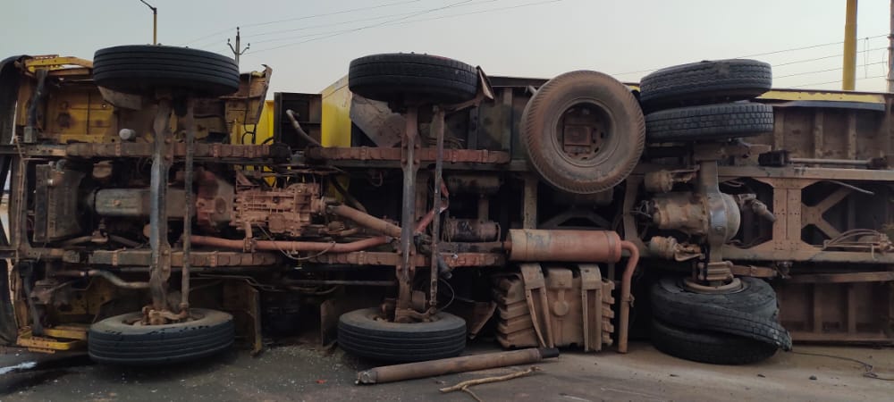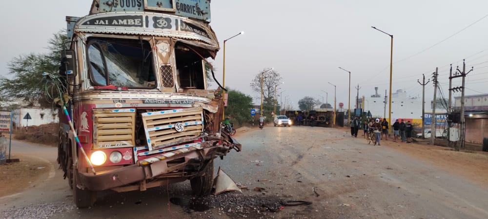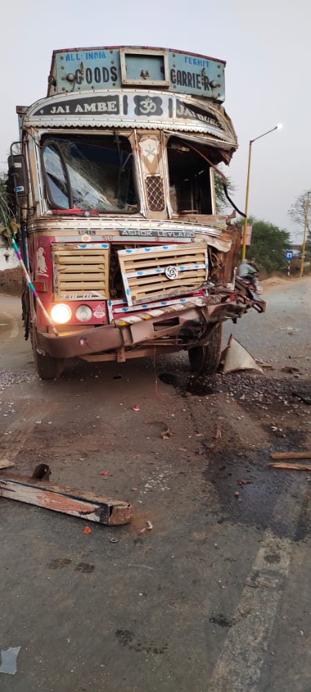 बालोद/ डौंडी लोहारा। नए साल से हादसों का सिलसिला जारी है। अब एक और हादसा डौंडी लोहारा में सामने आई है। जहां अंडी मोड़ के पास पेट्रोल पंप के सामने एक हाईवा और एक ट्रक में भिड़ंत हो गई। जिससे हाईवा सड़क पर पलट गई तो वहीं ट्रक की हालत भी खराब है। उक्त घटना आज सुबह 5:45 बजे की है। हाईवा में रेत भरी हुई है। आमने सामने टक्कर के बाद जोरदार आवाज हुई। जिससे आसपास के लोग बाहर निकले तब तक हाईवा पलट गई थी। आनन-फानन में लोगों ने दौड़कर चालकों को बाहर निकाला। गनीमत किसी को ज्यादा चोट नहीं आई है। पुलिस जांच में जुटी है। दोनों में आमने सामने टक्कर हुई है। देखिए तस्वीरें।
