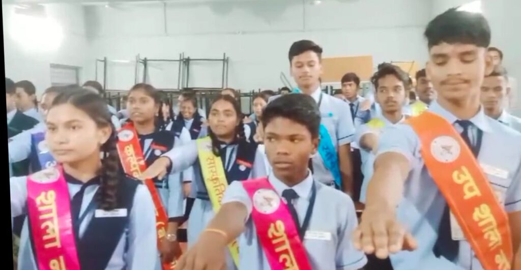 प्राचार्य श्रीमती सुनीता यादव ने शालानायक कमल कुमार, कु ग्रेसी साहू , उपशाला नायक भूजल सिंह खुशी विश्वकर्मा, क्रीडा सचिव गगन साहू, कामिनी रावते, सांस्कृतिक सचिव , अदीब खान,साक्षी सिन्हा रेड क्रॉस प्रभारी केवेंद्र धनकर, काजल सेन, स्काउट गाइड प्रभारी पूरब यादव, सोनम पटेल इको क्लब प्रभारी तारिणी मेरिया, खिलावन साहू एनएसएस प्रभारी उमा कौशिक, रोशन साहू साथ ही चारों सदनों के लीडर को शपथ दिलाई। प्राचार्य सुनीता यादव ने कहा कि शाला के समस्त छात्र संघ पदाधिकारियों को अनुशासन को बनाए रखने और अपने पद एवं दायित्वों का निर्वहन करने का शपथ दिलाया गया। जिससे सभी छात्र प्रतिनिधि स्वयं सक्रिय होकर अपने सहपाठियों को प्रेरित करेंगे जिससे उत्कृष्ट परीक्षा परिणाम के लक्ष्य को प्राप्त कर स्वयं को परिवार ,समाज एवं राष्ट्र के लिए उपयोग में ला सकें। व्याख्याता सुश्री गीता गुप्ता,अशोक कुमार सिन्हा ,राजेंद्र कुमार आवड़े, श्रीमती उमा त्रिपाठी ने सेशे और बैज लगाकर सम्मान किया।अशोक सिन्हा ने कहा कि विद्यार्थी अनुशासित होकर सतत व निरंतर पढ़ाई करें जिससे परिवार और समाज में कुशल नेतृत्व करने की क्षमता उत्पन्न हो सके। राजेंद्र आवड़े ने कहा कि नवनिर्वाचित छात्र संघ पदाधिकारी से यही अपेक्षा है कि वे कर्तव्यनिष्ठ ईमानदारी ,शालीन तथा निडर होकर अपने कर्तव्यों का निर्वहन करेंगे तथा दूसरे के लिए आदर्श बनेंगे।व्याख्याता टी एस पारकर ने कार्यक्रम का संचालन करते हुए कहा कि शाला के समस्त विद्यार्थियों को चार सदनों में लाल सदन ,हरा सदन ,नीला सदन और पीला सदन में विभाजित किया गया साथ ही शिक्षकों को भी प्रत्येक सदन की जिम्मेवारी सौंपी गई जिससे विद्यार्थियों में आपस प्रतियोगिता की भावना एवं अपने सदन के प्रति प्रेम और एकता की भावना जागृत हो सके। साथ ही छात्र अनुशासन में रहकर अपने विशेषाधिकार का उपयोग कर ईमानदारी से अपने कर्तव्यों का निर्वहन करेंगे तथा हर क्षेत्र में आगे बढ़ कर कार्य करने से संस्था का गौरव बढ़ा सके इसी उद्देश्य की पूर्ति के लिए शपथ ग्रहण समारोह का आयोजन किया गया।